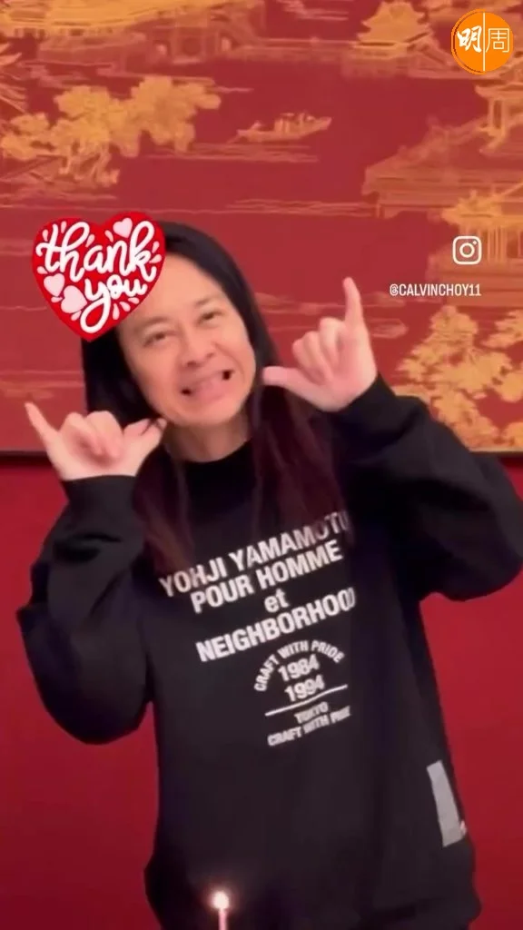 蔡一智在影片下以英文打上「family gathering」、「thanks for my brothers birthday cake」、「2 siu fun cake」、「thanks my family love」、「gold with the flow」、「60 cake」及「stay healthy」的主題標籤,相信其生日蛋糕是由傑仔所送。