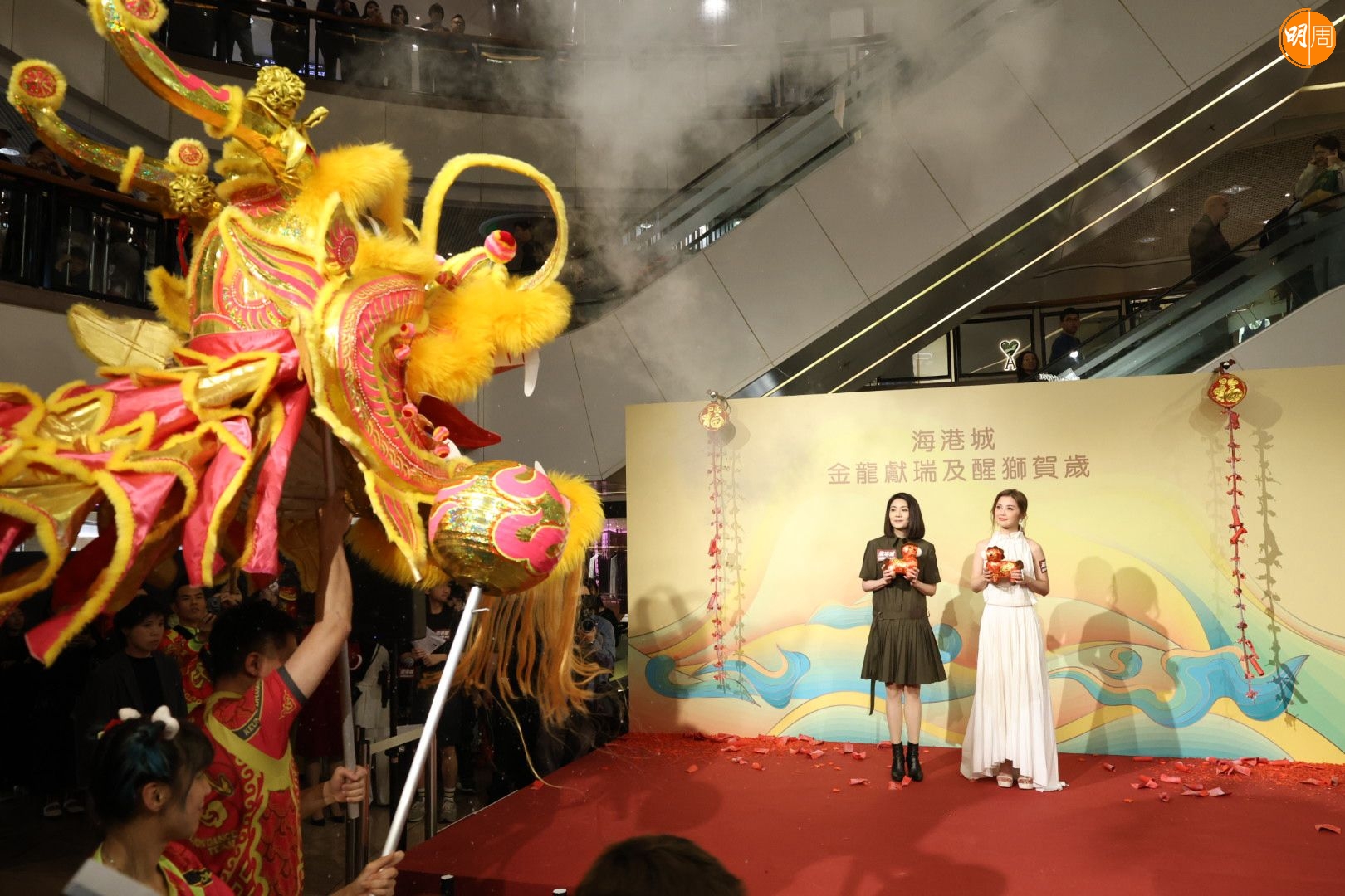 蔡卓妍(阿Sa)今日(2日)出席「金龍獻瑞及醒獅賀歲@海港城」活動,與九龍倉置業有限公司副主席兼常務董事凌緣庭一起主持儀式。活動上,堪輿學家李丞責指阿Sa於馬年行運,正與男友林俊賢蜜運中的她笑得好開心。