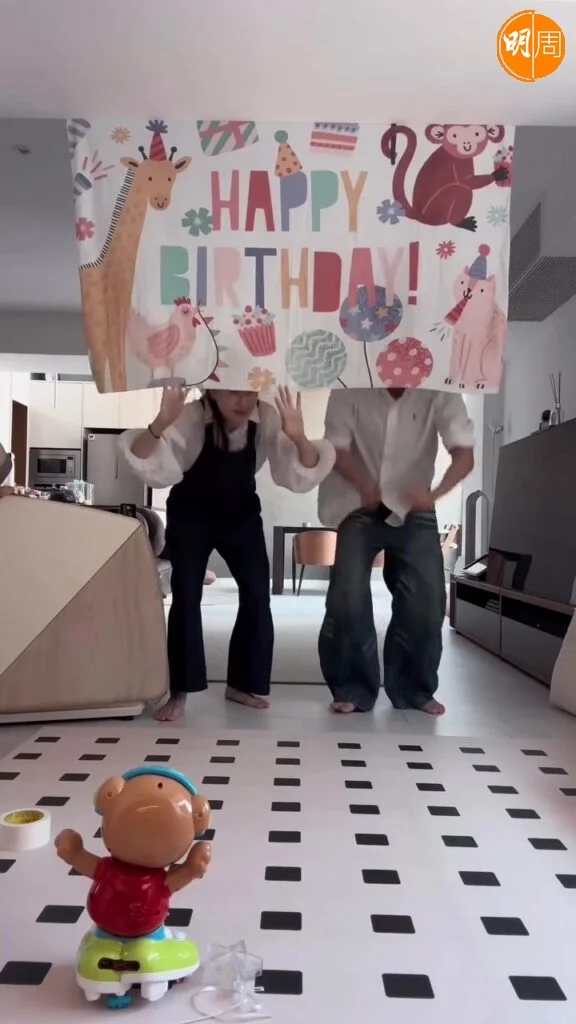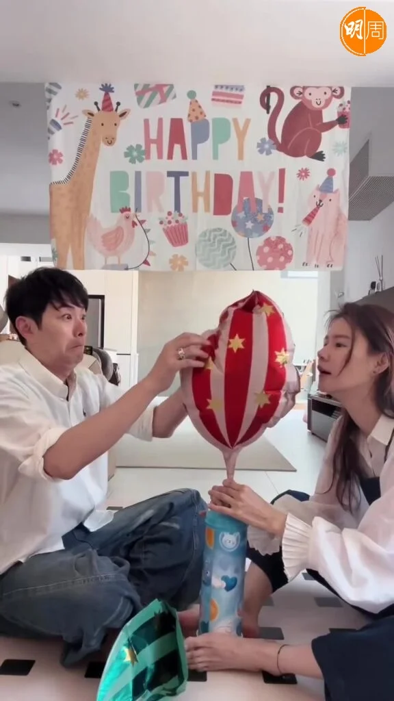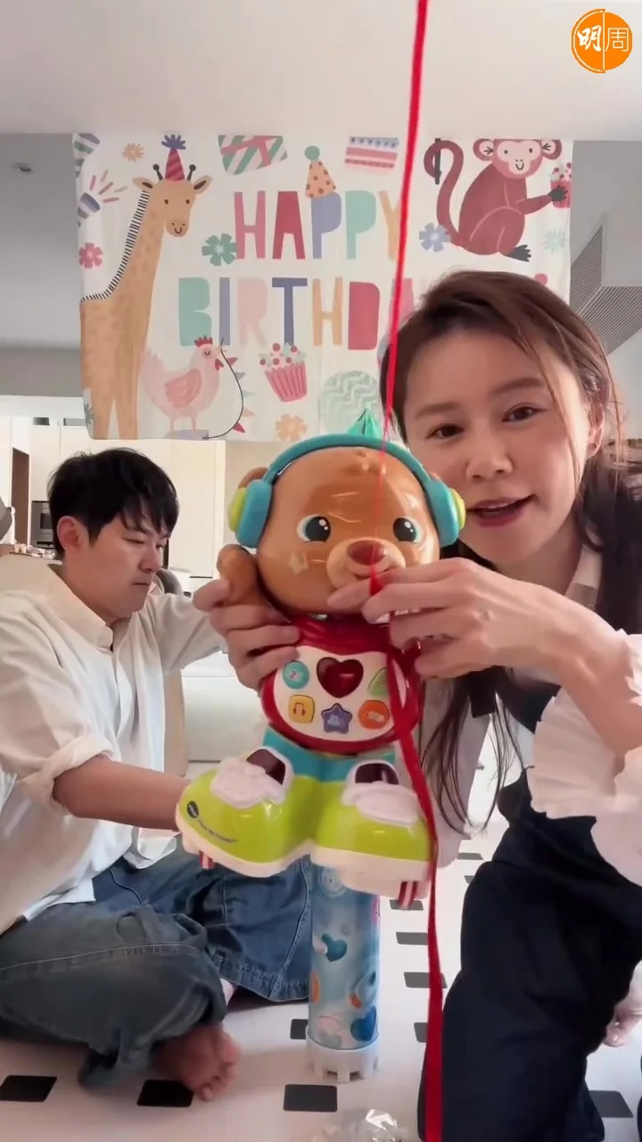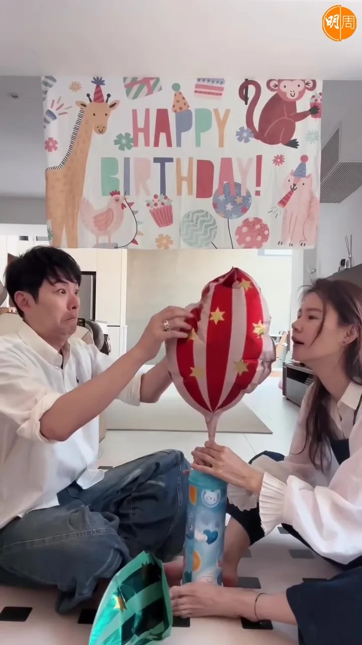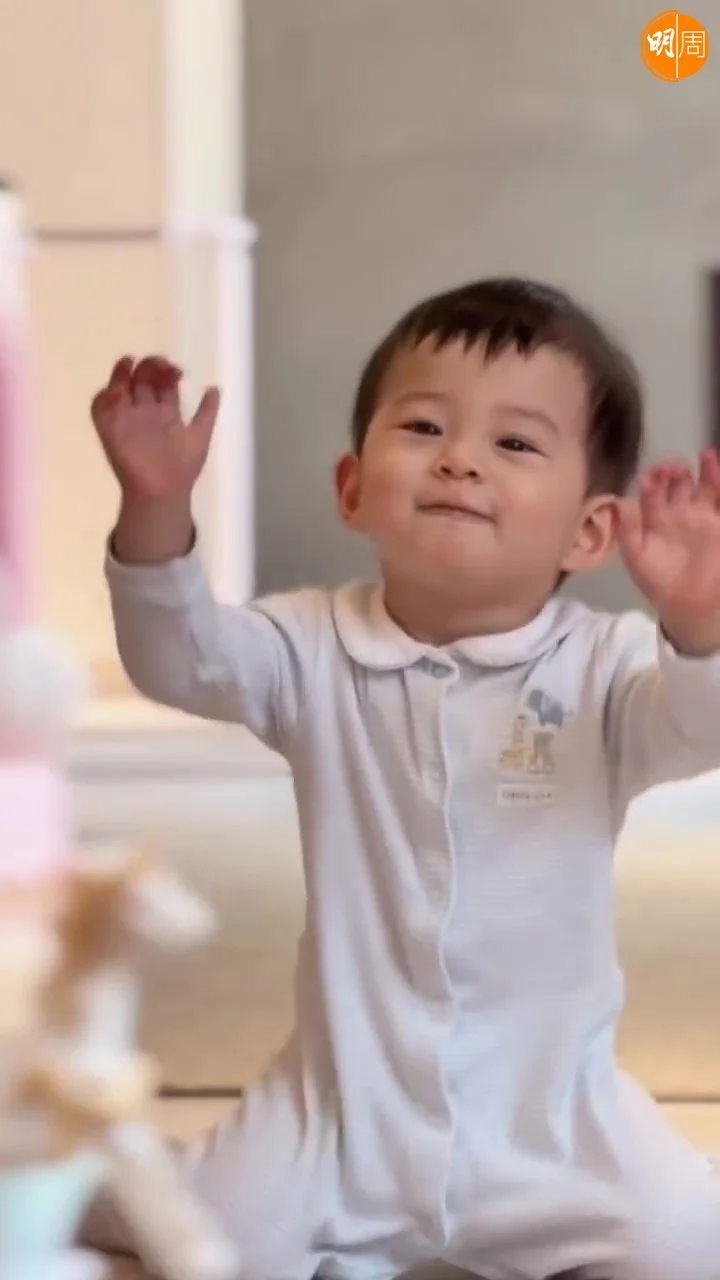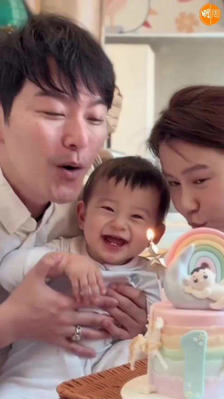 翠如留言:「蕭哈哈,這一天,是你睡醒的第365個早上,您還在感冒中。爸媽不為意眨了眨眼,您一歲了。爸爸媽媽笨拙地做了一個最細小的生日會,紀(記)錄您,幸福的一刻。祝我們的小笑瞼生日快樂🎈🌈」。