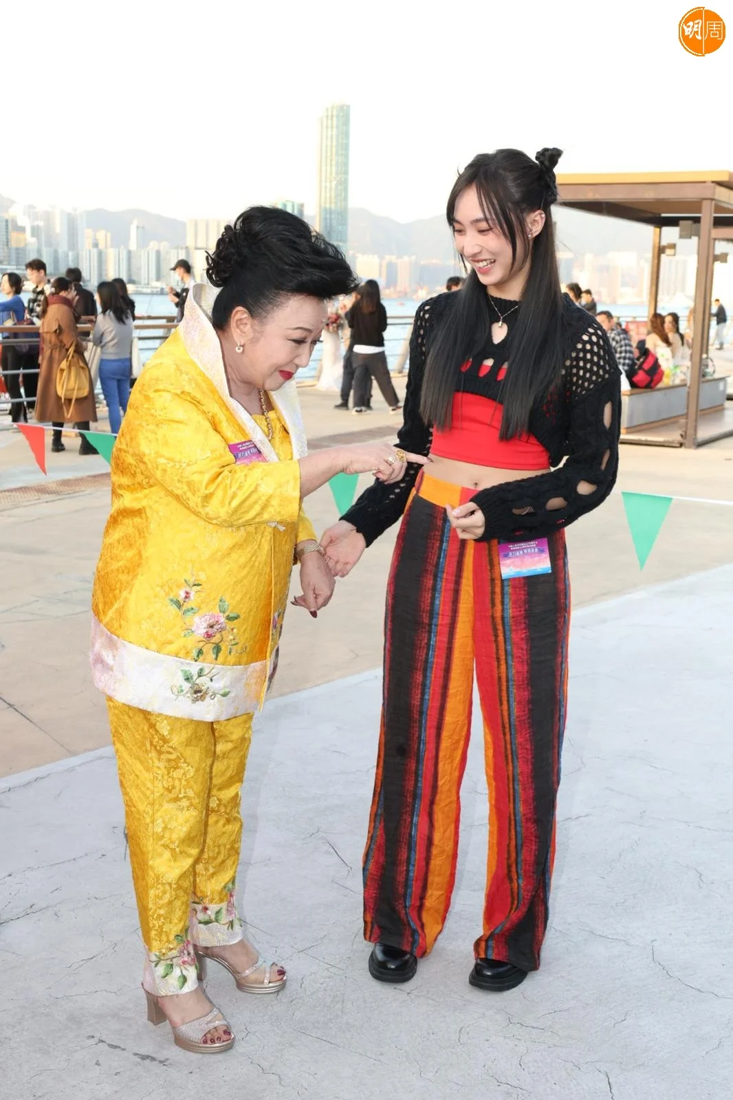 薛家燕及鍾柔美(Yumi)昨日(30日)出席中華人民共和國成立75周年曁海濱發展20周年慶祝典禮,並與75位小朋友跳唱《皆大歡喜》和表演十字步。家燕姐明年將度過75歲生辰,有不少影迷希望跟她舉辦生日會慶祝,不過她仍未決定,因為要等大女石祐珊從加拿大回港後才商量,她說:「因為筵開百席要物色場地,也要安排人手。」家燕姐稍後繼續為工作忙碌,既要拍攝賀年特輯,又要去多倫多開演唱會,更會與3歲的孫仔Julian一起拍攝護脊書包的廣告,並笑言孫仔第一次拍廣告便奉獻給嫲嫲,一定要給他封大利市。
