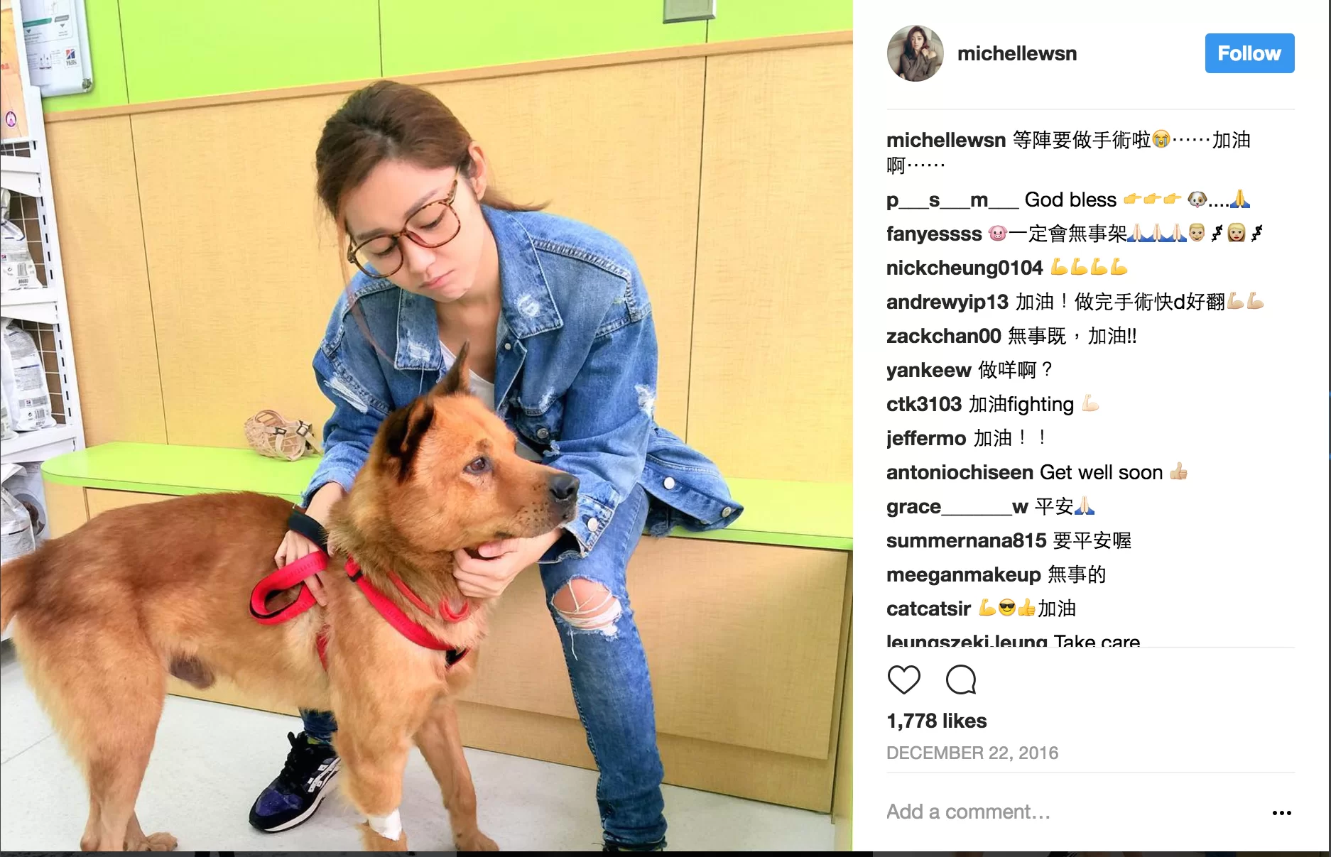 衛詩雅(Michelle)同樣是娛樂圈中出名的「狗痴」,她家中養了三隻貓三隻狗。Michelle曾在訪問中表示,人生最大目標就是要開寵物美容院,幫助流浪貓狗扮靚,為了完成自己目標,Michelle就攻讀寵物美容和動物傳心術課程,為將來開寵物美容院做好準備。Michelle這麼有愛心,粉絲都十分支持她的夢想。