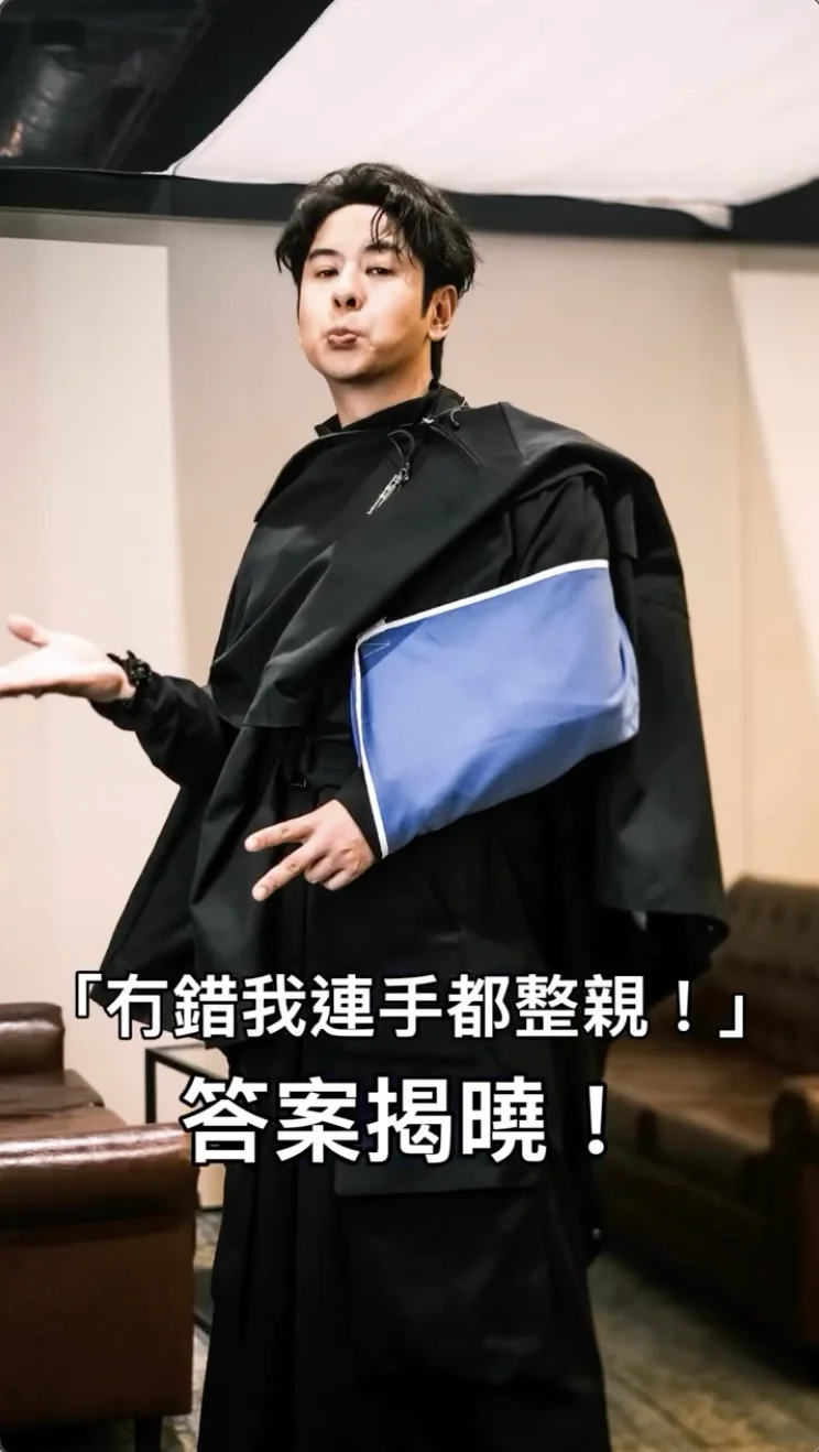 許廷鏗(Alfred)近日可謂禍不單行,繼早前打匹克球(pickleball)時不慎受傷導致足底跟腱撕裂後,日前更因心急返回牙科診所照顧病人,在樓梯踏錯步跣落10級樓梯,導致左手手肘受傷,今天(14日)需要入院接受手術治療。儘管接連受傷,Alfred在手術前夕依然如常開工,為周年晚宴擔任演出嘉賓,更以一身斗篷造型遮掩需佩戴托手帶的左手,敬業精神令人敬佩。
