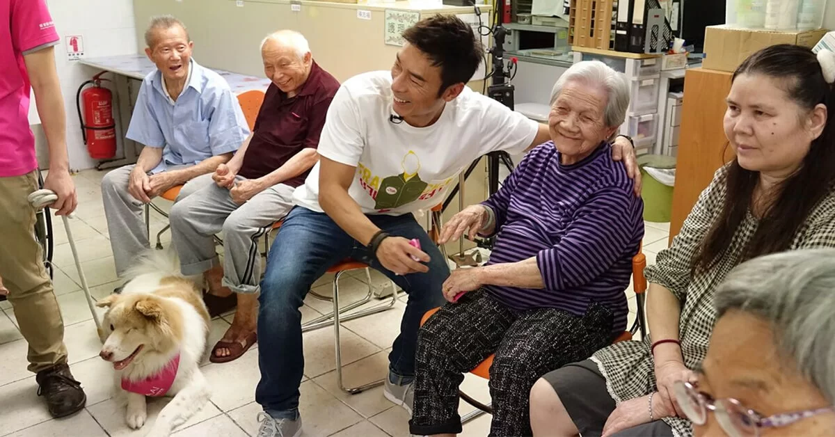 擁有愛犬Lucky的許志安,明白動物擁有一種能療癒人心的能力,日前就提議帶同「香港動物輔助治療學會」的三隻治療犬「淡定哥」、「不不」及「Tiger」,到元朗老人院進行探訪,齊齊氹吓老友記開心。