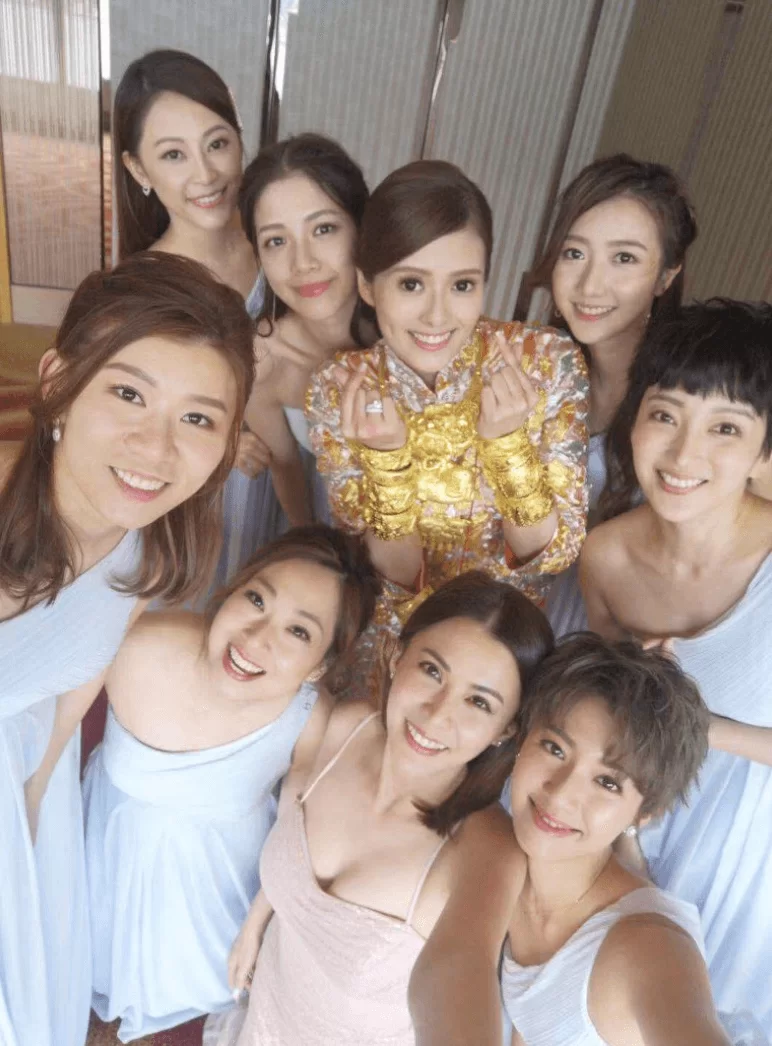 而Whitney的圈中好友蔡思貝、陳曉華、梁麗瑩、葉蒨文、李天縱及何依婷齊齊擔任姊妹,開心送新娘子出嫁。