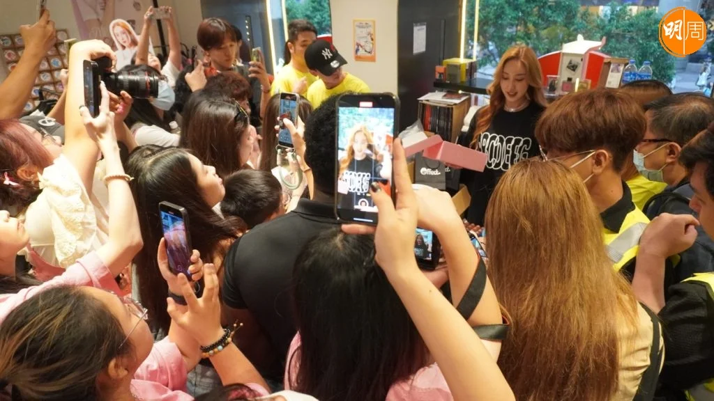 許靖韻(Angela)日前於英皇娛樂期間限定概念店「0 e:ffect Concept Store」舉行簽名會,兼客串一日店長,吸引數百粉絲迫爆舖頭。Angela於產品上簽名時,有fans更豪言:「你簽幾多,我買幾多!」認真豪氣!