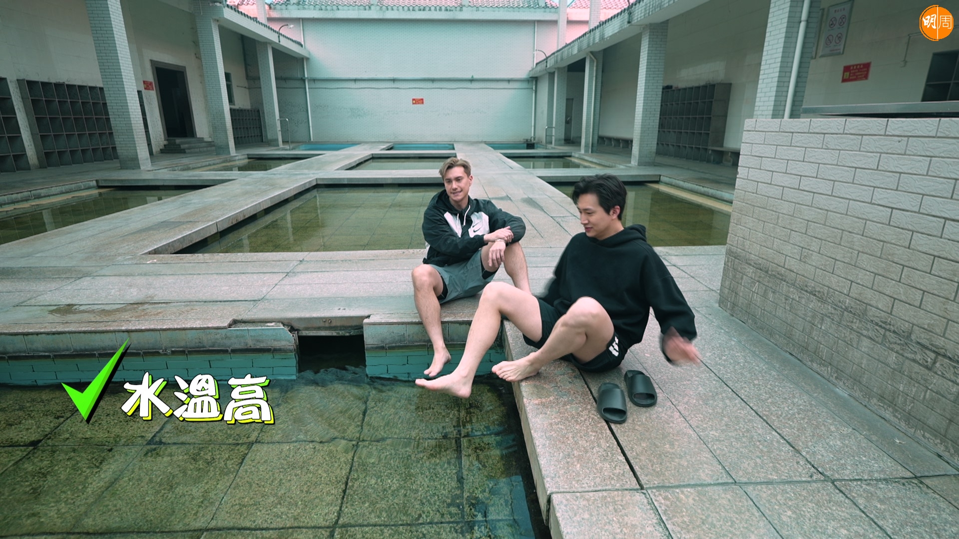 二人率先試浸自明朝已開業的溫泉老店,實測當日該店顧客雖然絡繹不絕、但網絡評分卻只有3點幾、評論亦只有14則。當中最好笑的,除了有顧客直指溫泉有尿味、更有人指曾目擊顧客在溫泉洗衫洗鞋,兼且見到泉面有垃圾飄浮。由於內容實在太驚嚇,朱仔朗讀評語時一度爆笑至「紅都面晒」兼「走音」,過程爆笑。雖然聽落咁劣,但二人依然「捨身」測試溫泉的水溫、水質、清澈度及氣味,更將傳聞有「尿味」的溫泉水直接擺近鼻認真聞了又聞,十分專業。除了溫泉體驗,二人還直擊顧客將各式各樣「超乎想像」的物品帶入店家,令二人再度忍俊不禁。