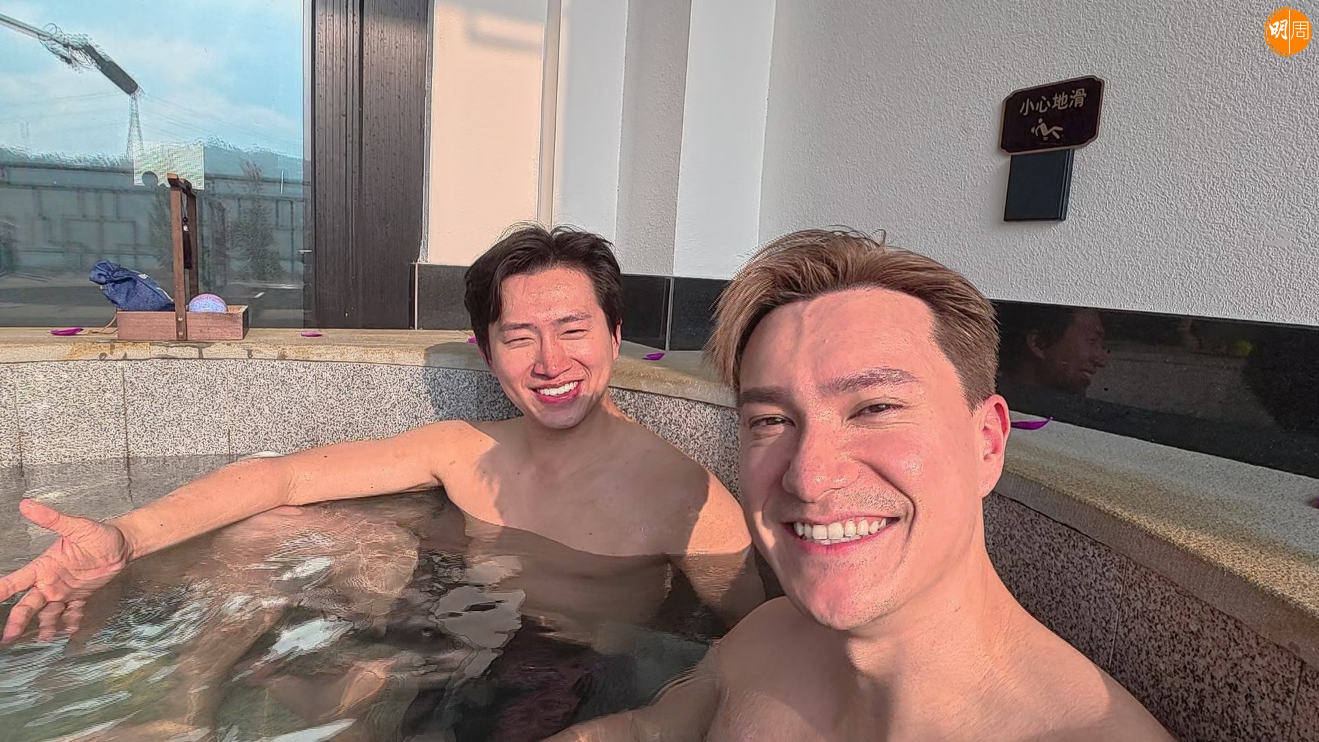 另一間於2025年才落成的靚裝溫泉酒店,內裏除有大如水上樂園的溫泉,還有中藥及花草等不同類型溫泉,朱仔與GM更獲安排上房、享受房間內的私人溫泉。雖然二人因為拍這節目變成老友,但對於要肉帛相見擠在一個私人溫泉中,二人明顯感覺尷尬,朱仔紅住面笑言:「第一次浸住溫泉睇日落」,至於GM則於拍攝期間忍不住說了一句:「你隻大髀有啲埋」,嚇到朱仔連環狂Say Sorry,情景爆笑。