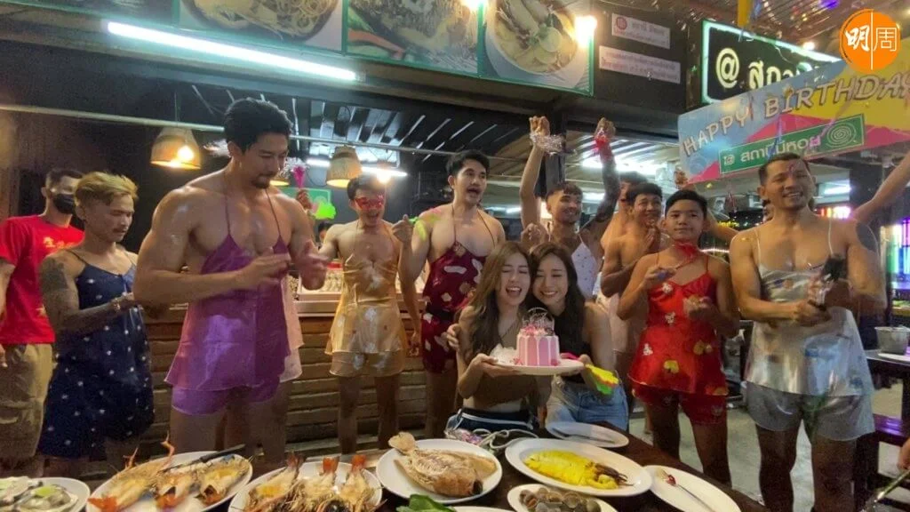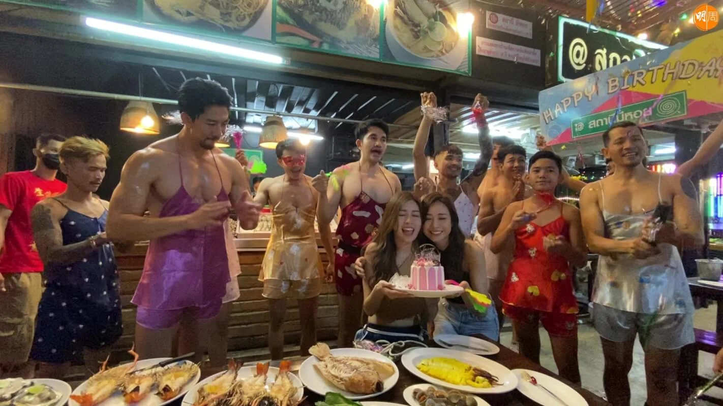 無綫旅遊節目《請一日假去旅行》,繼日本及韓國行後,之前在《香港小姐再競選》中奪得冠軍及亞軍名銜的何沛珈(Roxanne)及李芷晴(Stephanie)前日(6日)亦拍住上飛赴泰國拍攝。起飛當日撞正Stephanie的30歲正日生日,Roxanne在製作組協助下鎖定位於曼谷的猛男海鮮餐廳為Stephanie慶生,該餐廳最馳名的,是駐店猛男會以女性裝扮在客人面前勁歌熱舞,合照打卡無任歡迎。