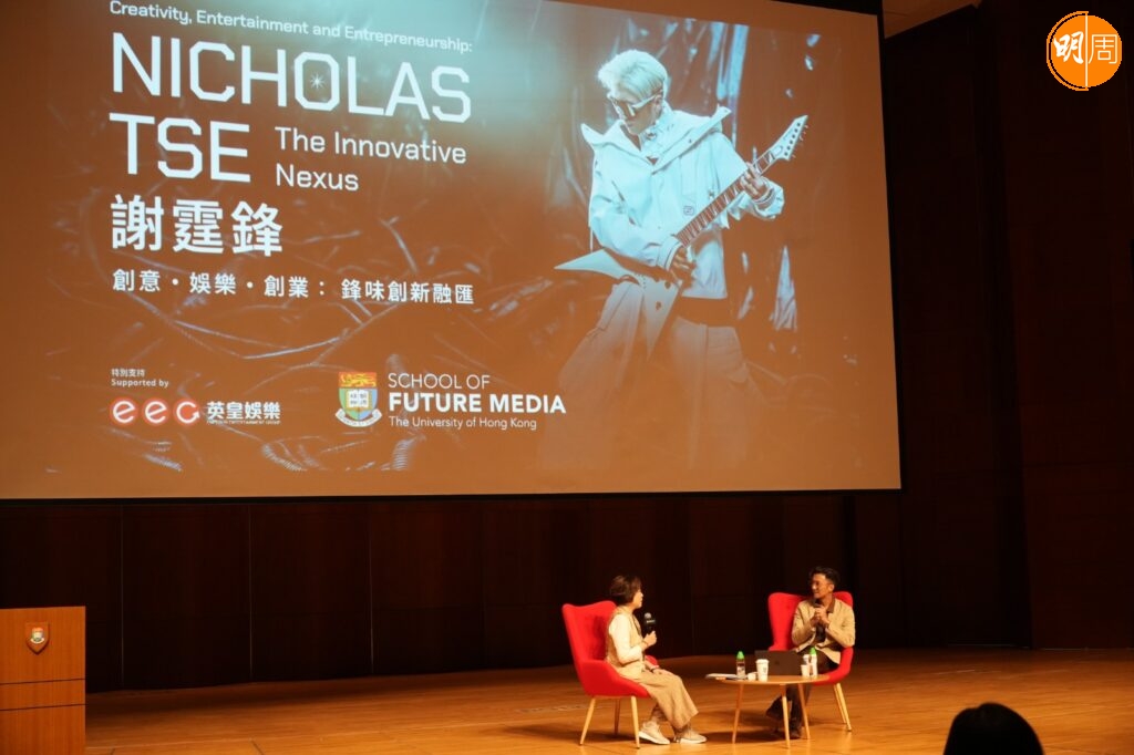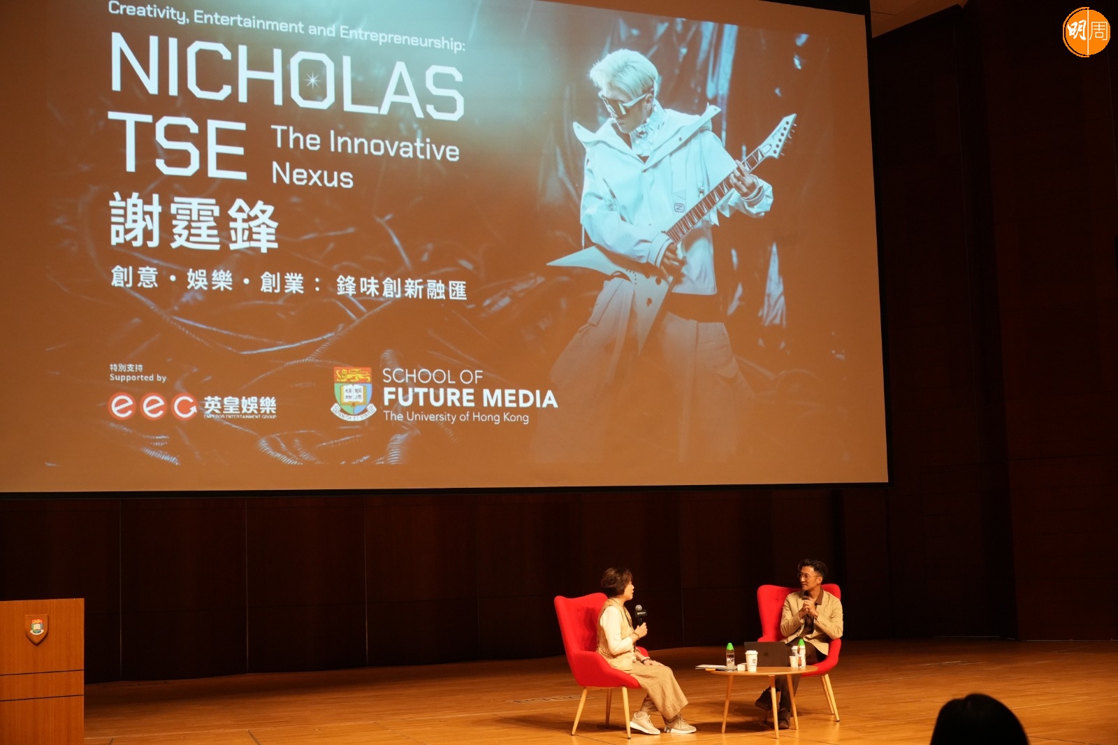 昨日(2日)謝霆鋒受香港大學未來媒體學院邀請,出席「創意.娛樂.創業:鋒味創新融匯」主題講座,跟大家探討他橫跨演藝、餐飲、科技、商業等多個領域的歷程及創新思考。講座以對談形式進行,由該學院總監及教授(實務)楊紫燁(Professor Ruby Yang)跟霆鋒對談,後設有問答環節,讓霆鋒回答現場同學問題。