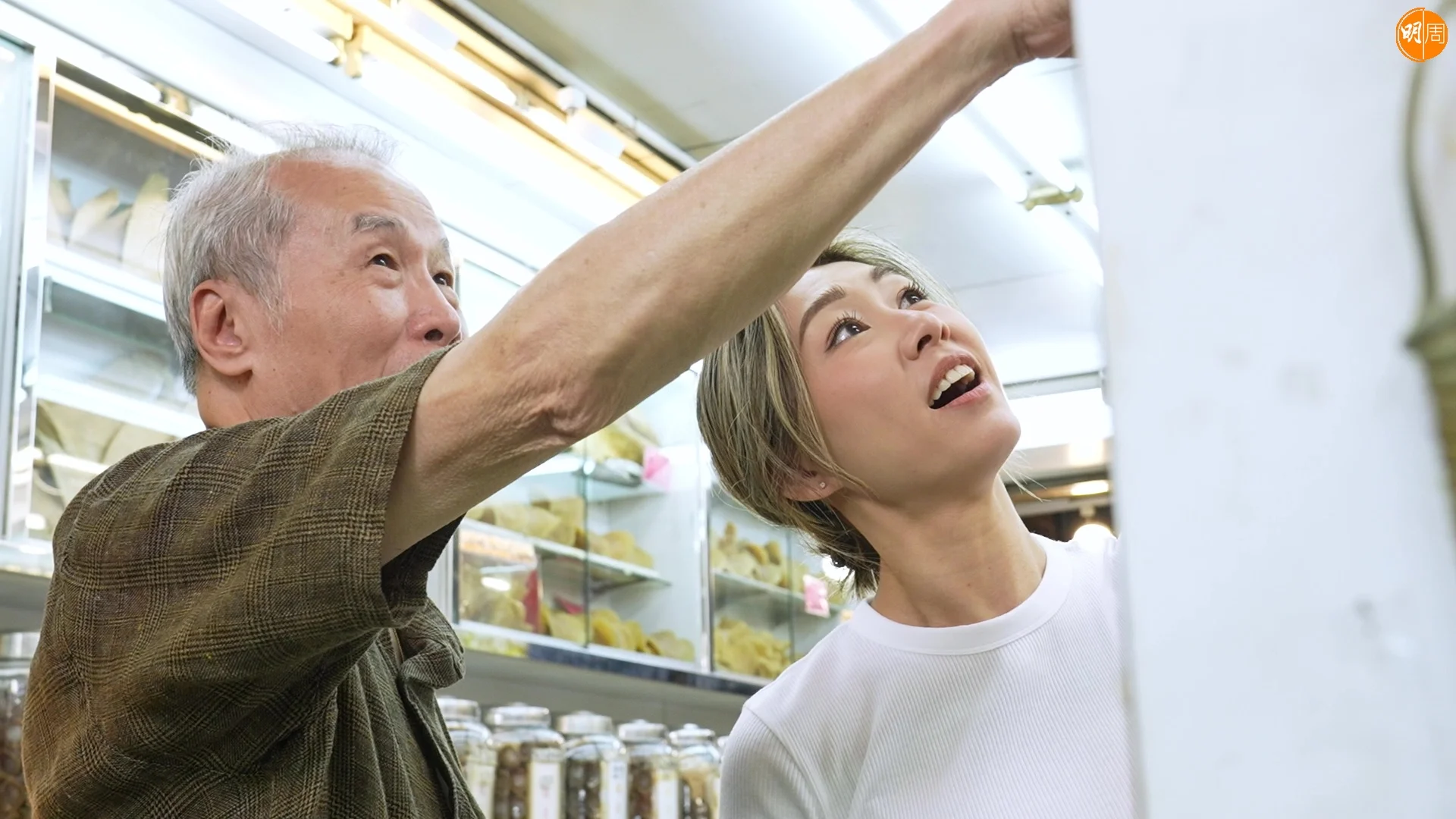 胡定欣在海味店 由發海參、包冬菇到搬搬抬抬均親力親為,,冒著大雨獨自搬運兩大紙箱的畫面令人震撼。她坦言從小遺傳了母親的女強人性格,這次體驗更意外遇見「媽媽的手」──一位與母親工作方式極相似的老員工,瞬間勾起無限回憶,場面感人至深。