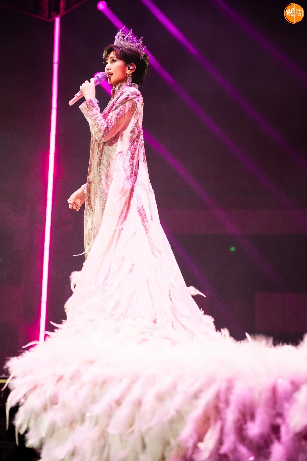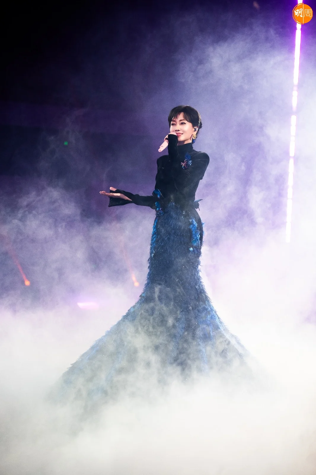 舞台採用沉浸式四面台設計,讓每位觀眾都能與趙雅芝近距離互動。她一改往日優雅形象,以帥氣鼓手造型打鼓登場,隨後脫下黑色皮褸,獻上搖滾版《瀟灑走一回》,為演唱會拉開序幕。更令人驚艷的是,她在表演中即興跳起「掃腿舞」,步伐輕盈、笑容燦爛,展現出不輸年輕人的活力。