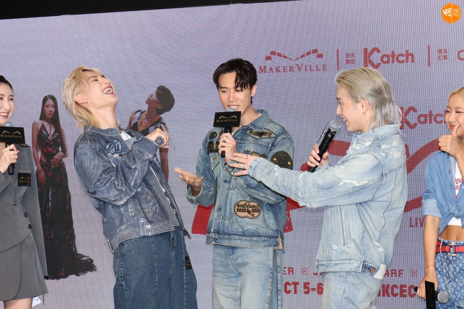 MIRROR成員柳應廷(Jer)、邱士縉(Stanley)、李駿傑(Jeremy)與COLLAR 成員邱彥筒(Marf)、李芯駖、陳泳伽(Winka)今日(23日)出席記者會,公布合作舉行演唱會。Marf、芯駖、Winka都想與Jer砌磋舞技及歌藝,Winka建議他到時穿貼身衫展示健碩身材;Jer自詡為舞王,會在台上盡力跳,更幻想過三個男生跳一段性感舞蹈。Jeremy自稱是百搭牌,最近常與MIRROR不同成員合作,「叻就可以百搭﹗」Stanley日前生日因為忙於工作,只與女友食車仔麵慶祝,被問到姜濤除了送「黑圖」贈慶,還送了什麼禮物?Stanley笑說︰「他說有一天不會黐住我﹗」他指大家都不在乎禮物,若收到姜濤的禮物,之後在回禮方面會有壓力,寧願不送好了。