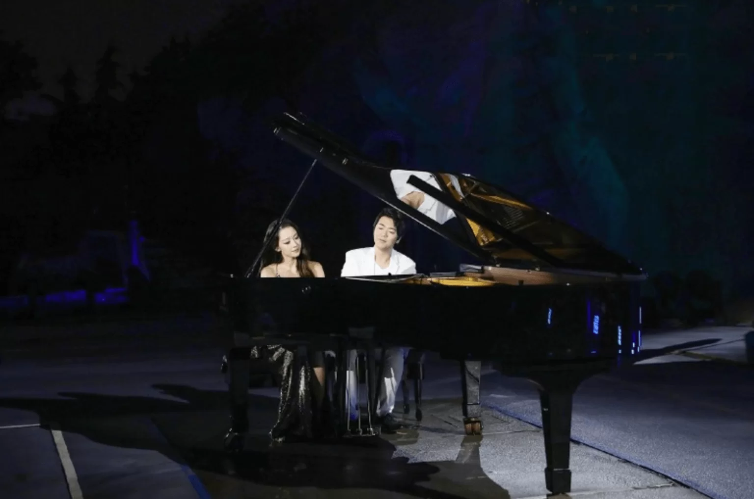 國際級鋼琴家郎朗6月與德韓混血兒女友Gina Alice結婚,夫妻二人繼於婚禮上彈奏鋼琴後,昨晚再度公開亮相,並合體表演《獅子王》名曲。