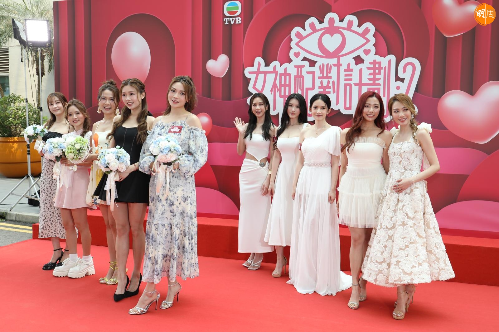 TVB今日(16日)在電視城舉行《女神配對計劃 2》「全球招親」記者會,5位新女神郭珮文、陳若思、何沛珈、俞可程、阮嘉敏公開擇偶條件,林盛斌及上一季女神梁敏巧、關嘉敏、葉蒨文、羅毓儀、李芷晴亦有出席,與sophie成功配對的曾展望擔任大會司儀。大會宣布,除了5位女神,還會有N位隱藏女神在節目內踢館。