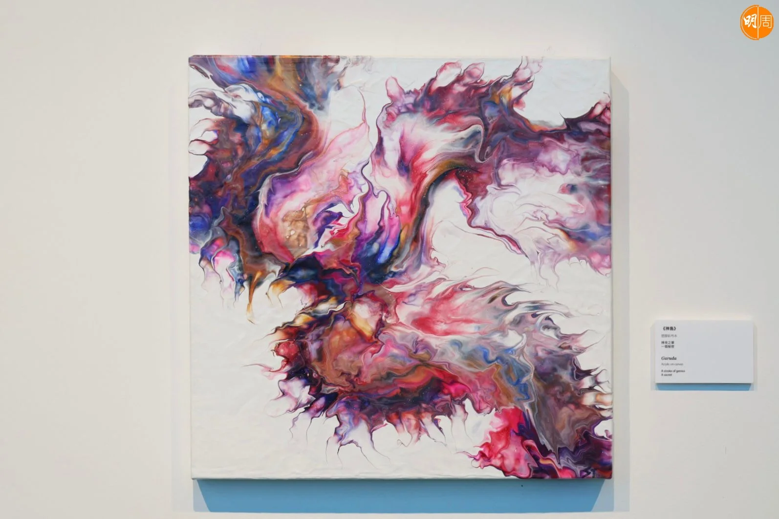 鄧麗欣首度舉辦個人畫展,今日(12日)於啟德零售館舉行開幕儀式,何嘉莉、許恩怡等出席,Stephy自言重拾當年做新人出道的感覺。她介紹其中一幅以芬蘭夜空作為創作靈感的流體畫,花了一星期完成,創作過程需鋪在地上繪畫,更甜笑自爆男友Bryan隱藏於畫中,要細心留意才會發現。她表示若好姊妹想買畫,考慮會給八折優惠,Stephy感激Byran給予空間支持,她試過因為太過專注於作畫,忘記回覆電話,而連續失聯數小時,男友亦沒有投訴。