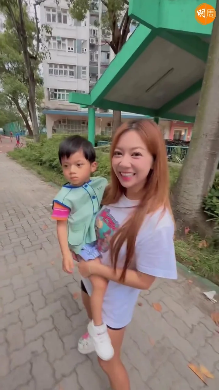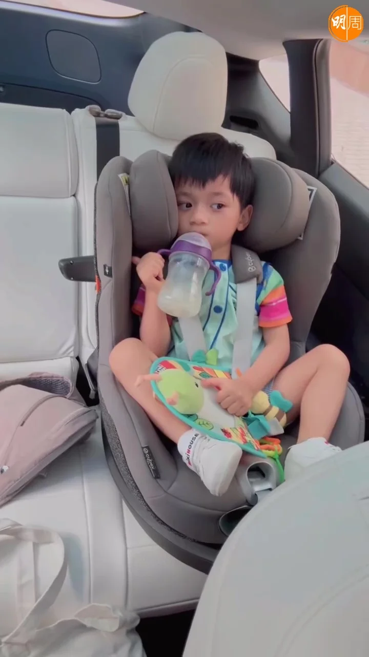 鄭俊弘與何雁詩送囝囝返學好興奮。
