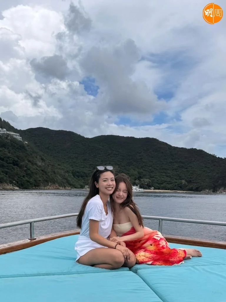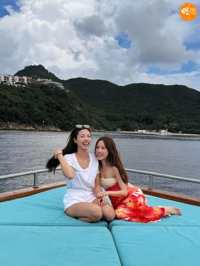 伍樂怡(Kelly)在社交網曬出二人出海合照及一張舊照,曬二人姊妹情。Kelly離巢無綫後自家經營運動服裝品牌,不時在社交網展示穿上貼身運動及性感泳衣照,不過今次的出海照,她則穿白色短袖T與短褲,不搶走以Tube Top長裙示人的壽星女鏡。