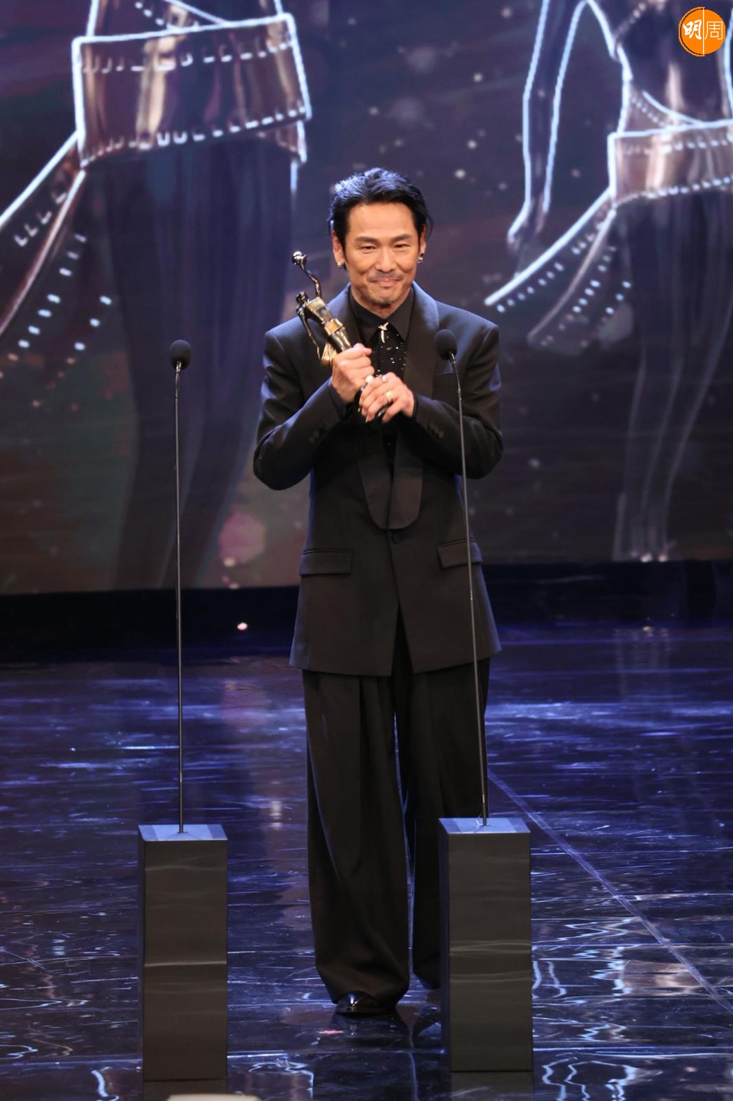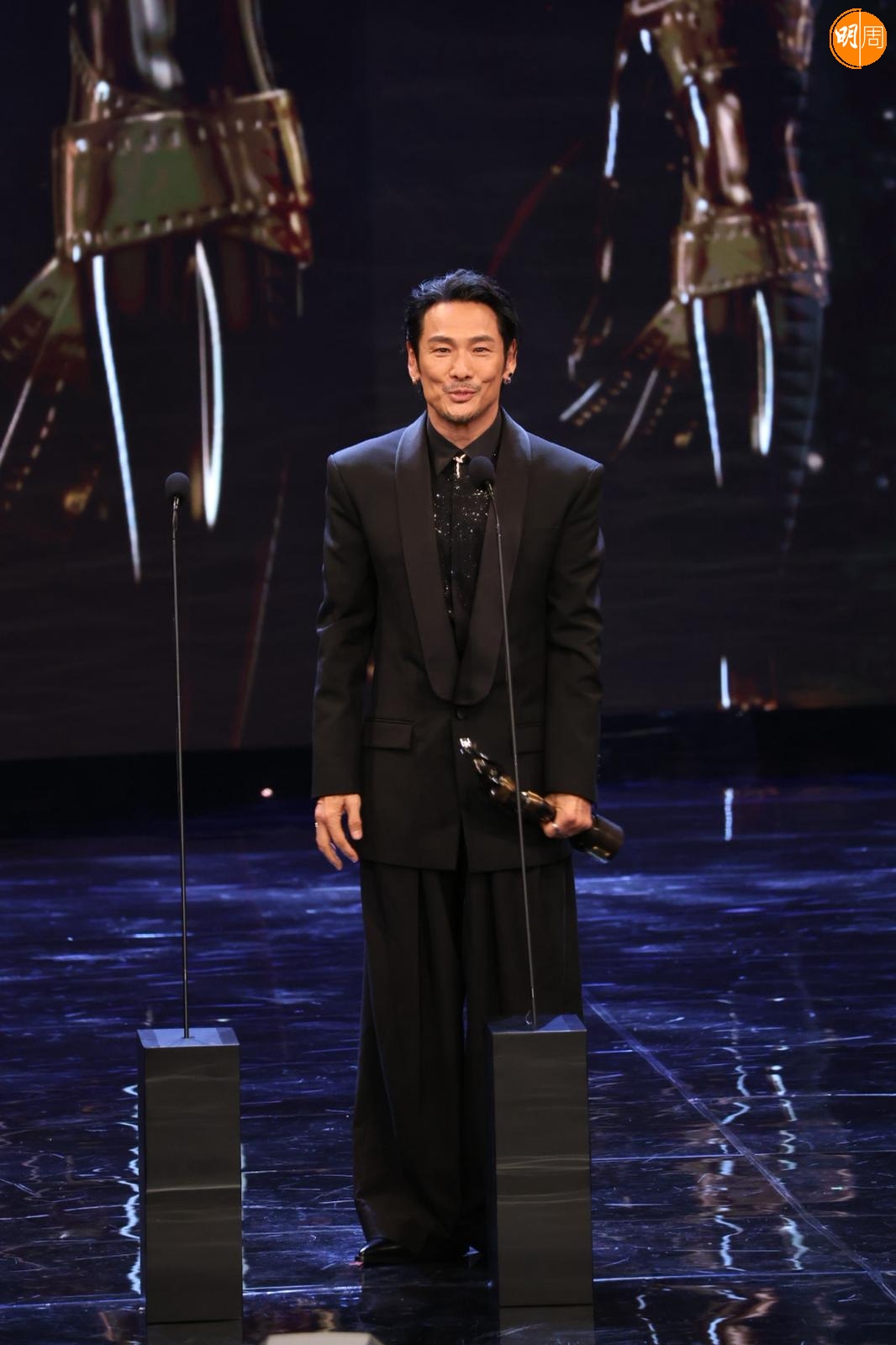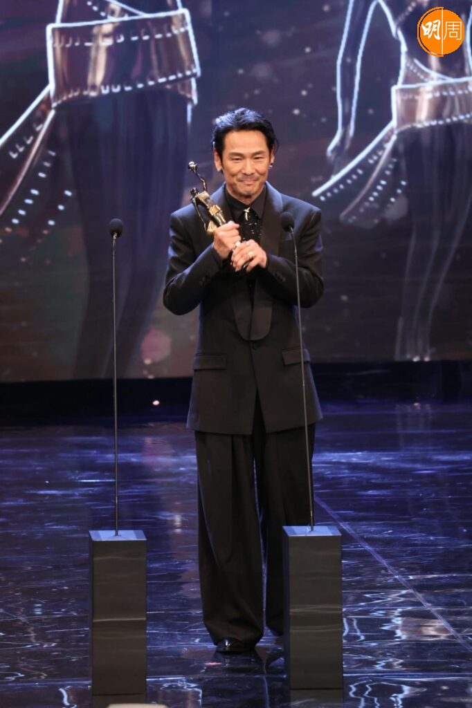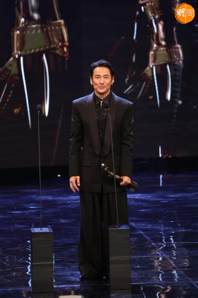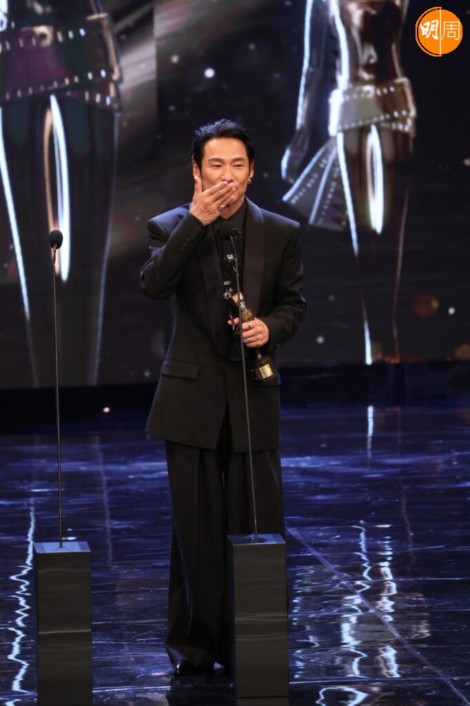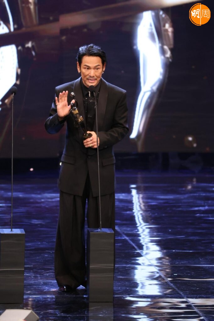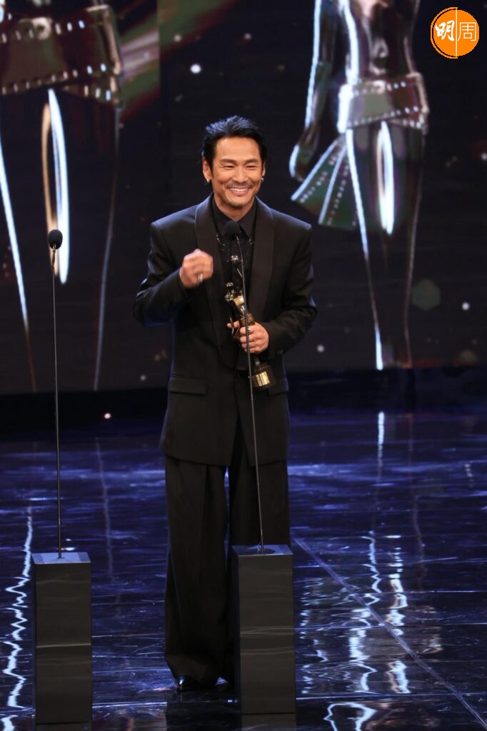 他在台上提到梁家輝帶他入戲,他說:「我剛攞到劇本當日,當時知道梁家輝有份參與,他是影帝,公認好演員,我們又熟當然找他。我們年輕時樣子好似,他是孖生大佬,他用了一晚時間分享這個角色,他用了我最難一場戲,用了四、五個演繹方法演一次給我看,那種近距離演繹好震撼,我都呆了,之後叫我演一次,我對白都未記到,所以真的好難忘。」