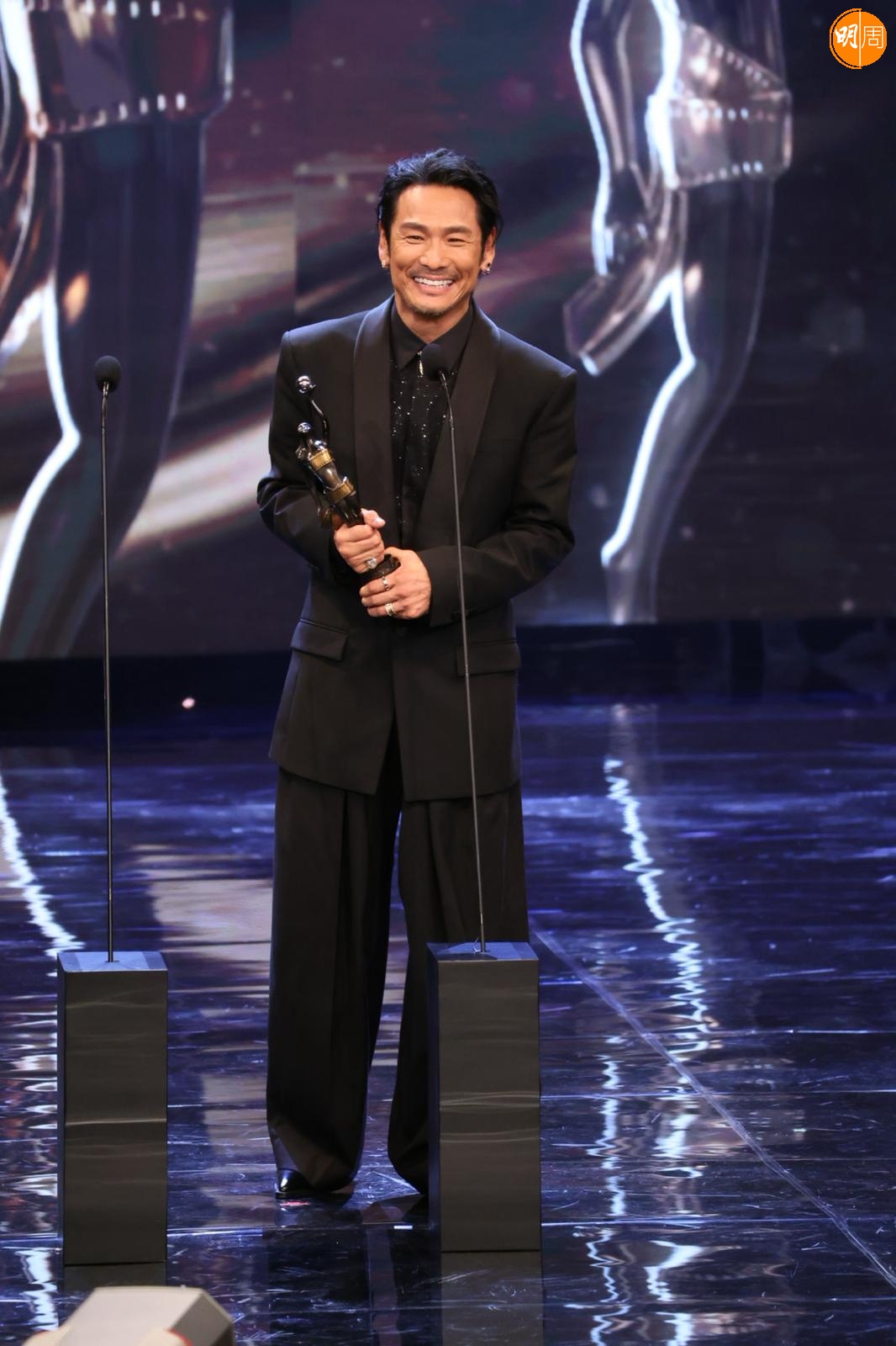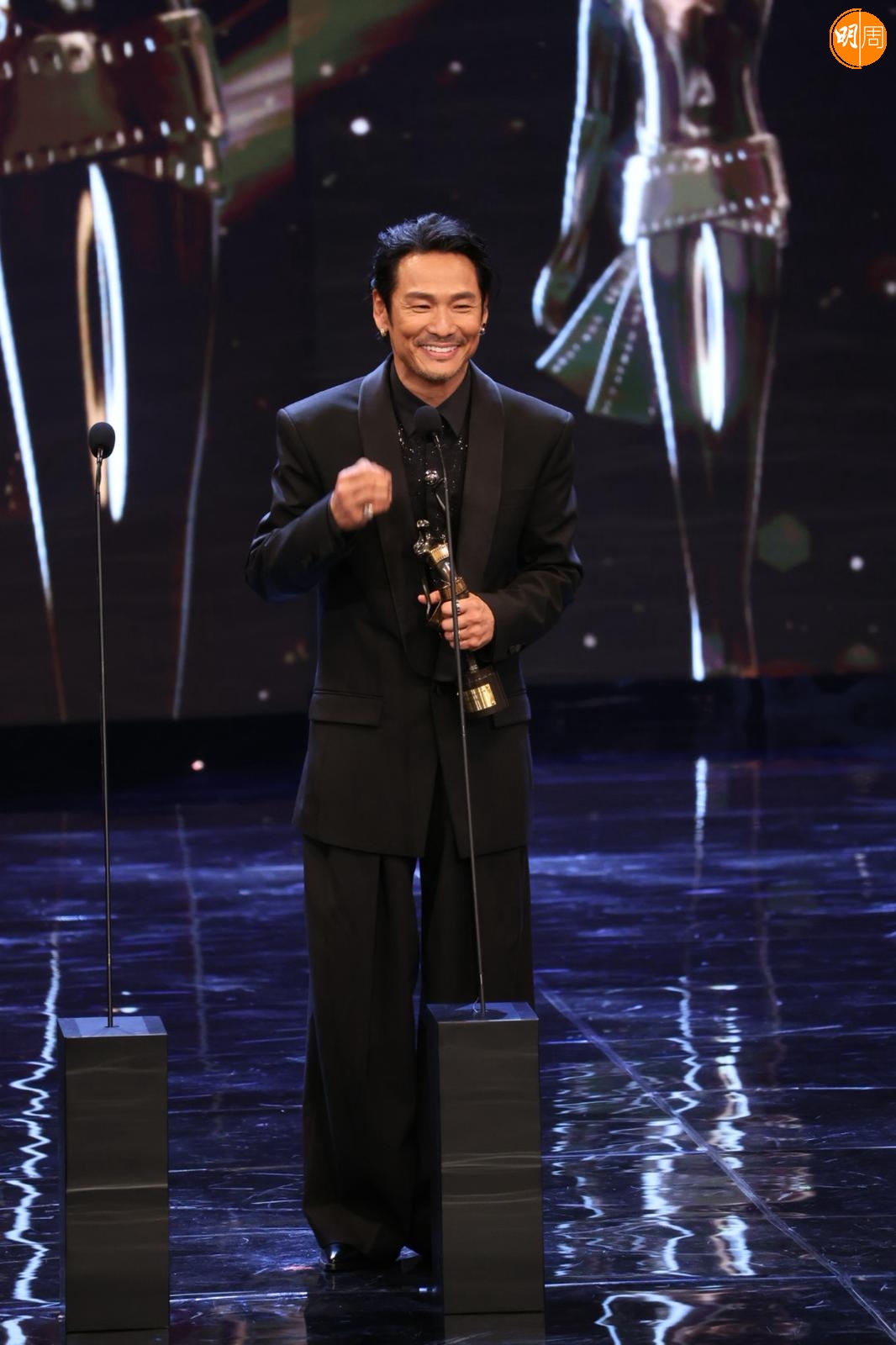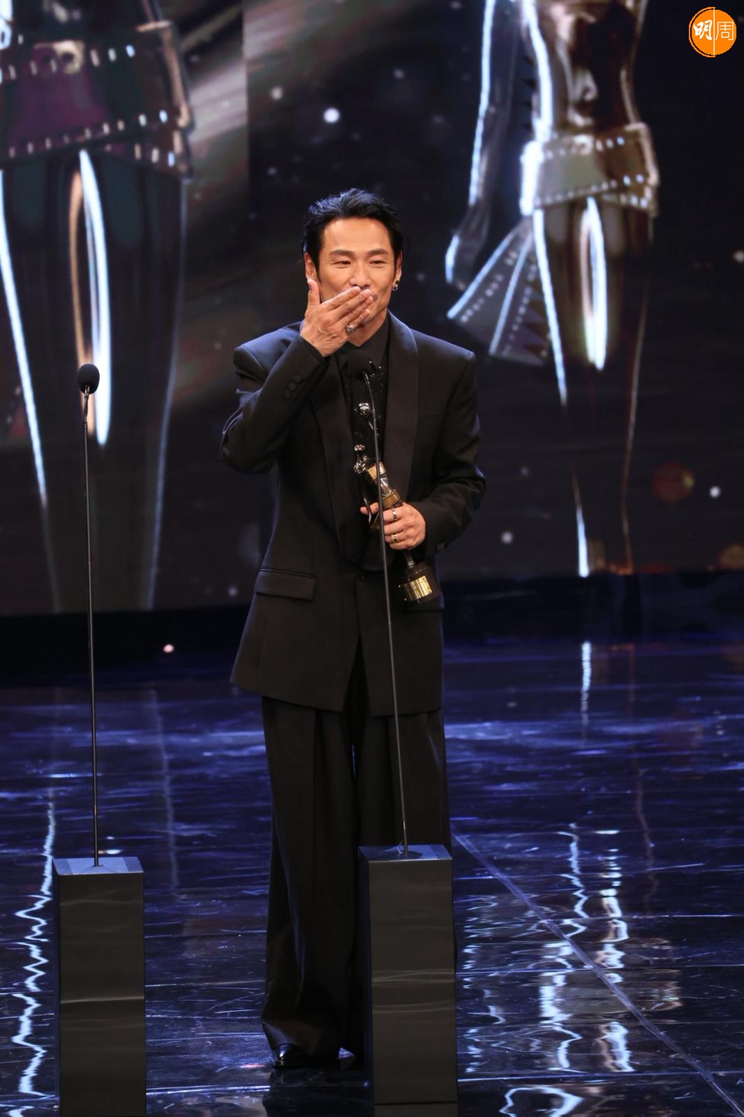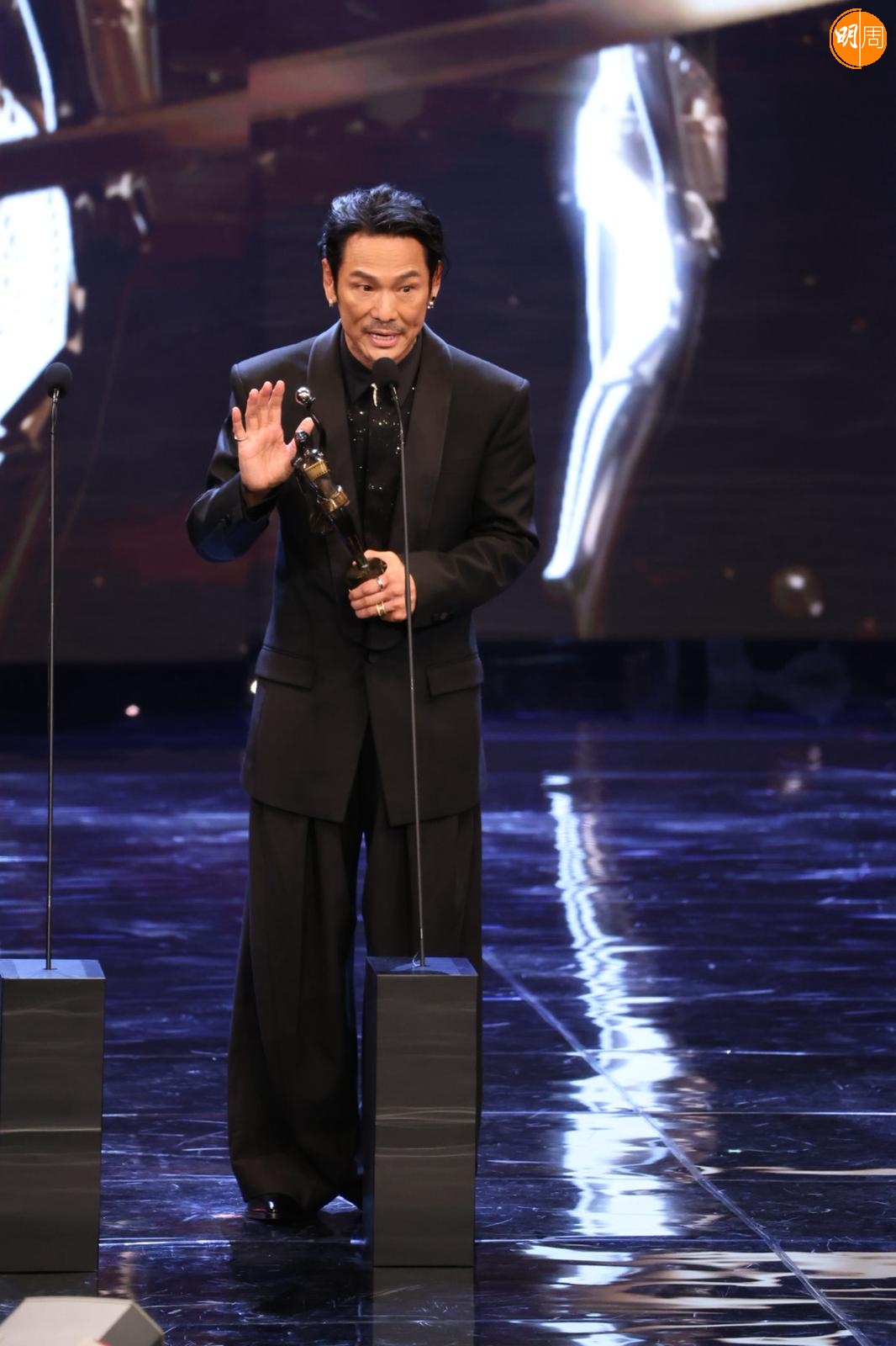 他在台上提到梁家輝帶他入戲,他說:「我剛攞到劇本當日,當時知道梁家輝有份參與,他是影帝,公認好演員,我們又熟當然找他。我們年輕時樣子好似,他是孖生大佬,他用了一晚時間分享這個角色,他用了我最難一場戲,用了四、五個演繹方法演一次給我看,那種近距離演繹好震撼,我都呆了,之後叫我演一次,我對白都未記到,所以真的好難忘。」