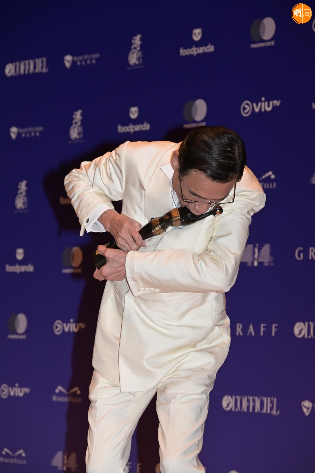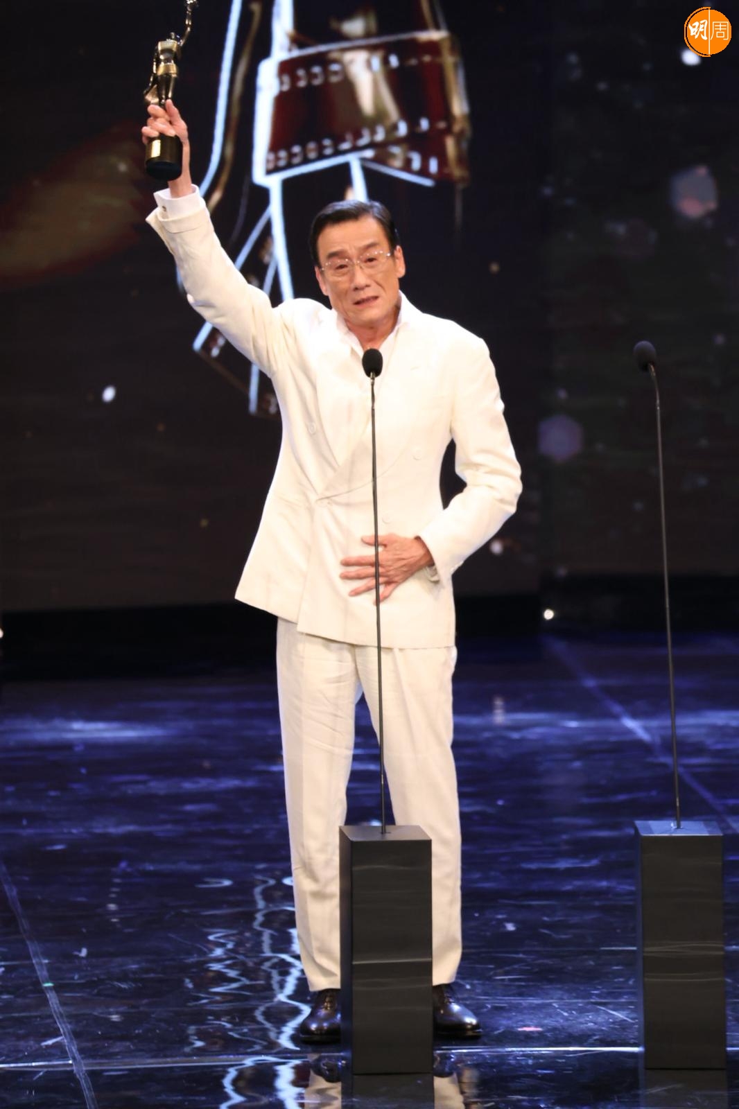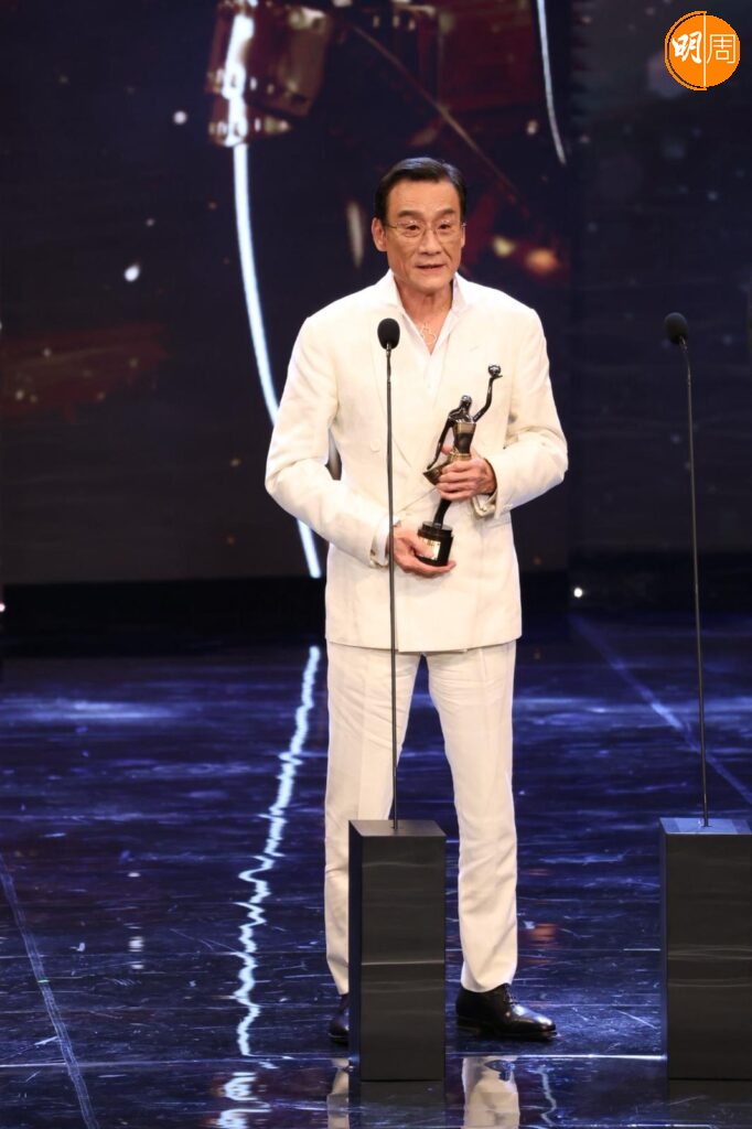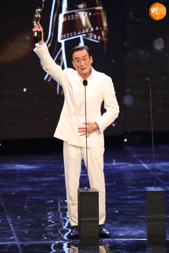 提到他在台上喊,他笑說 :「我做比我老婆睇,成家睇緊直播,攞獎後成家call爆機,多謝所有家人,尤其太太。」問他有甚麼角色想演?他稱從來冇角色要求,做演員做到這個年紀,希望自己的表現令廣大觀眾有驚喜,充滿幻想,可以有更多機會演出,這是作為專業演員應有態度。