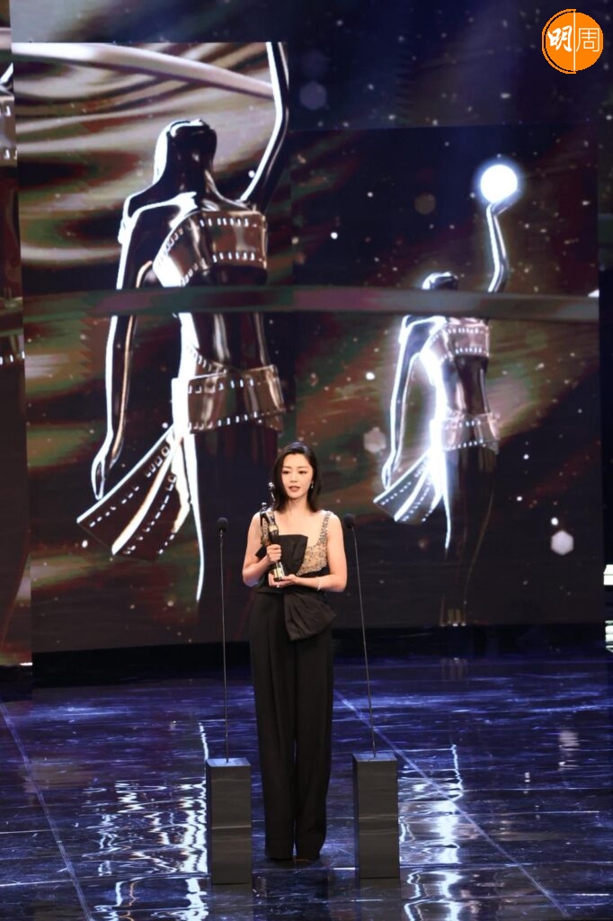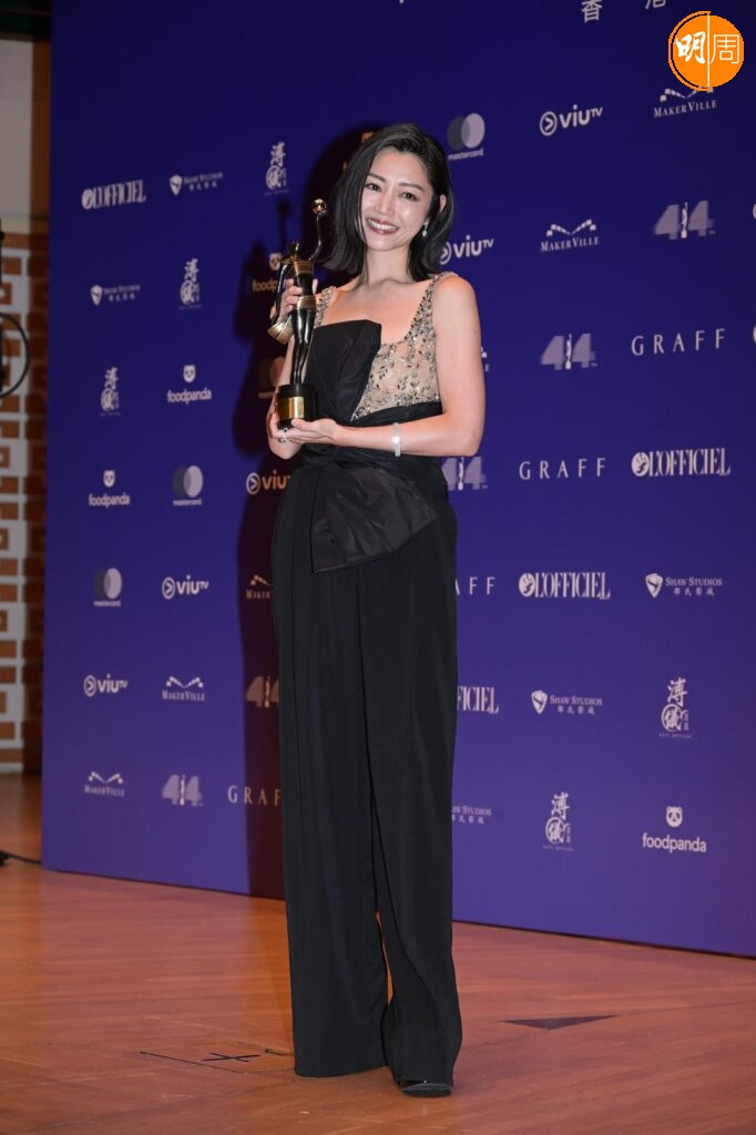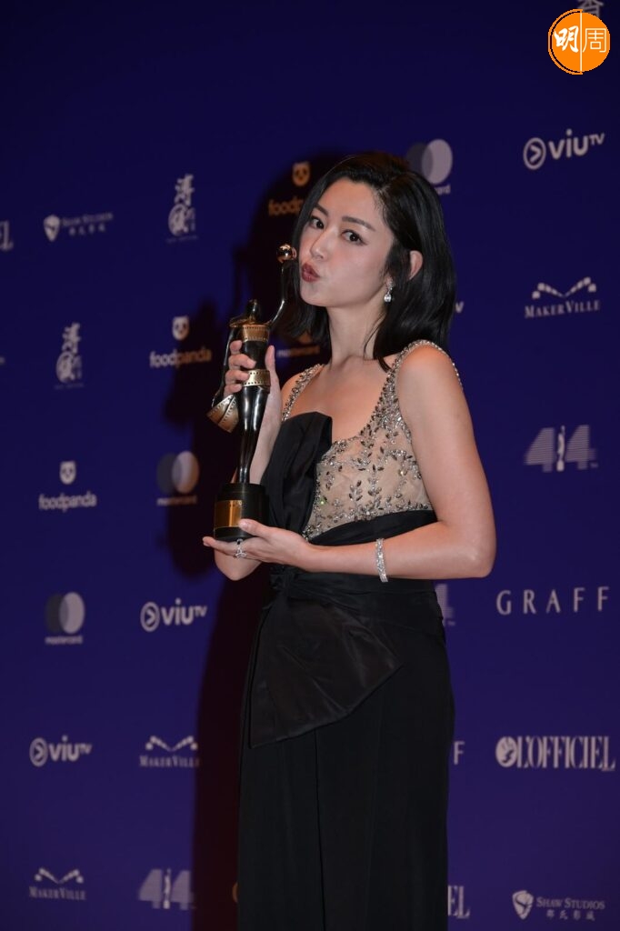 提到嫁了個旺妻老公?她說,「都是,老公都幾好,無限量支持我,就算今日條裙露腳和pat pat,老公都相信我的決定。」說到剛才kiss cam環節,老公大方與她錫錫,她笑說 : 「佢好鍾意㗎,佢好驚個kiss cam影唔到佢,係咁追住個鏡頭。」繼去年「封后」之後,連續兩年走上金像獎舞台,她表示這個感覺好神奇,其實這部戲最近才決定上映,所以上天是有最好的安排。