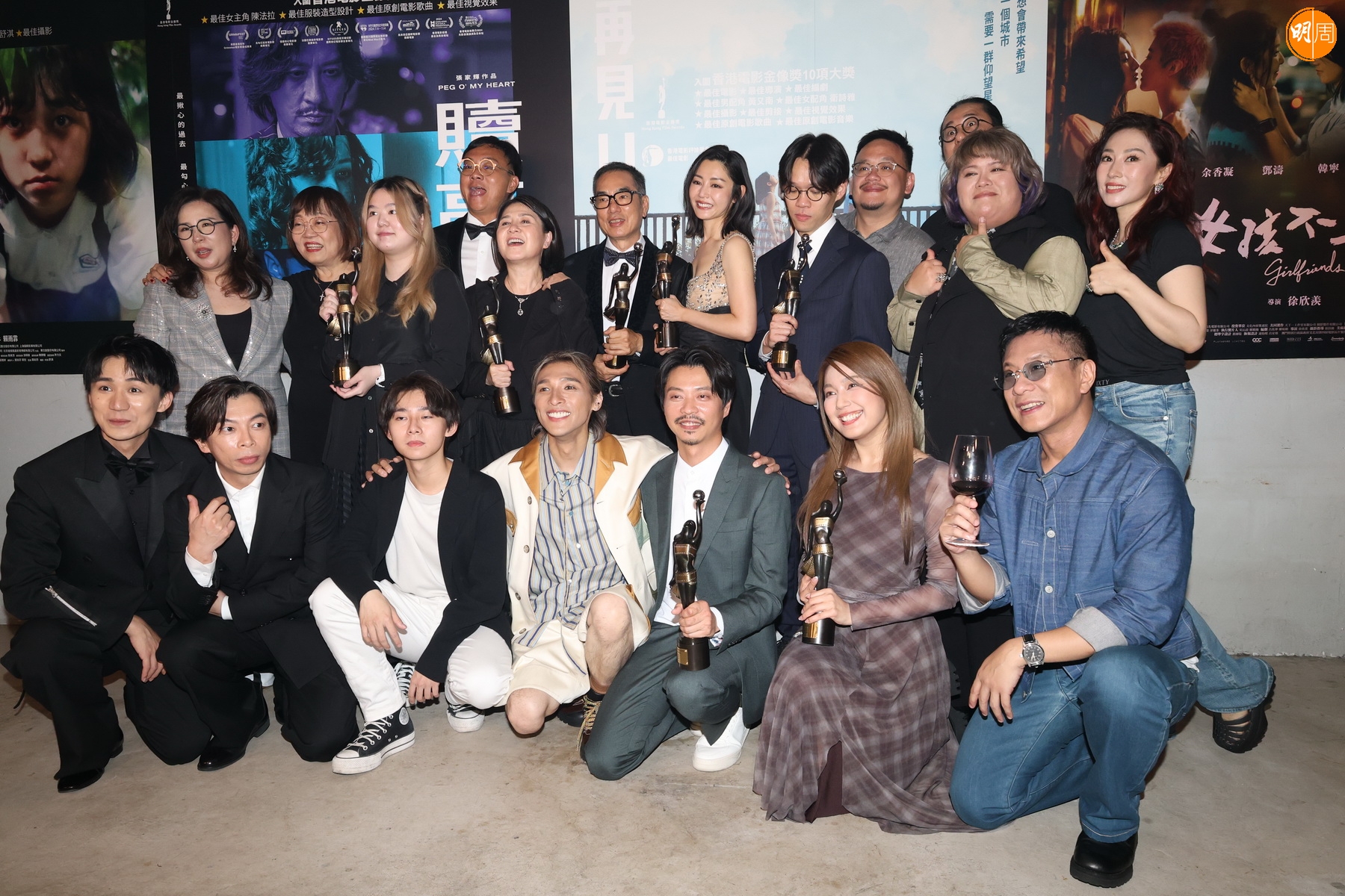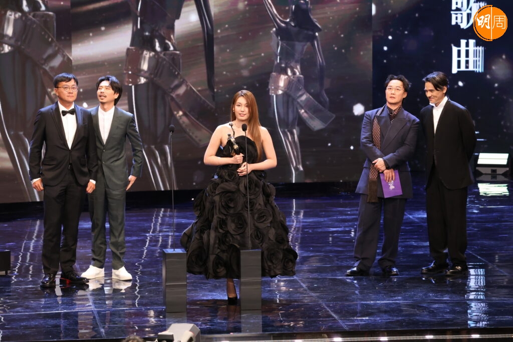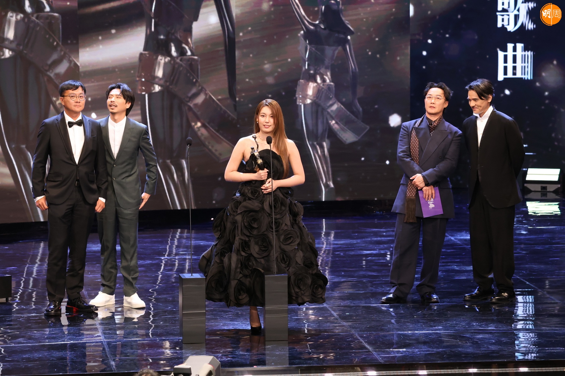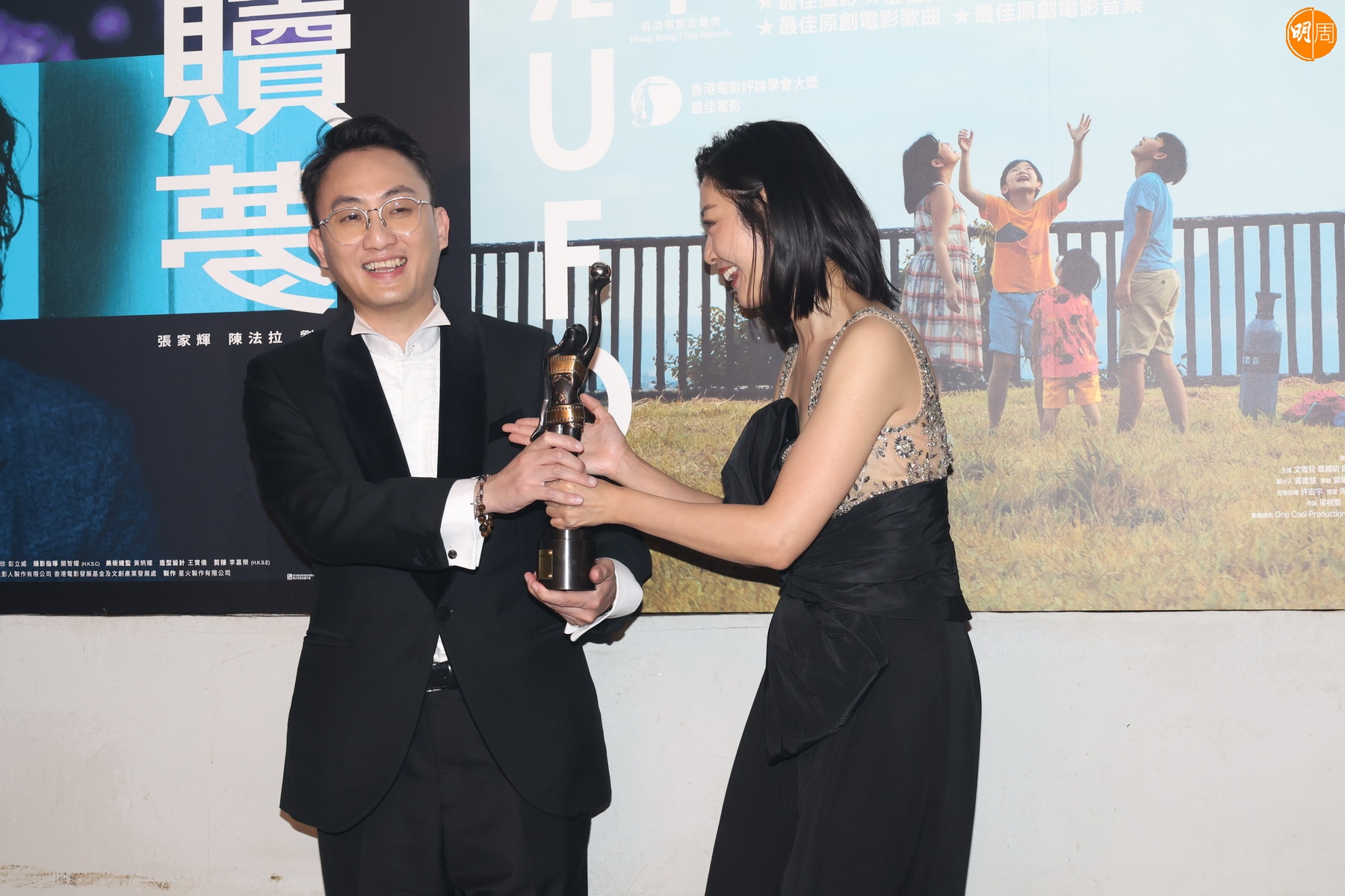 他更笑說:「幸好鏡頭只拍到那一刻,因為在之前,我其實伏在白只的肩膀上哭到顫抖,所以白只要回家換衣服。」問他有否被白只嫌棄?他笑謂:「沒有,他一直拍我大腿安慰我說『I know, bro』,因為我們樂隊朱凌凌成員和崔展鴻有很深交情,早在十八、十九歲時就開始了,真的沒錯!」黃淑蔓笑言見朱栢康哭得激動,還以為他被自己戲中的親情打動。黃淑蔓於九年前已憑電影《差一點我們會飛》奪得「最佳原創電影歌曲」,今次第二次提名,也成功攞獎,她笑說:「我覺得好勁,好似叫親糊都食糊咁!」說罷即更正不是這個意思,她是抱住感恩和榮幸的心,希望下次有機會可以自摸,自摸意思是可以包辦曲詞編監。