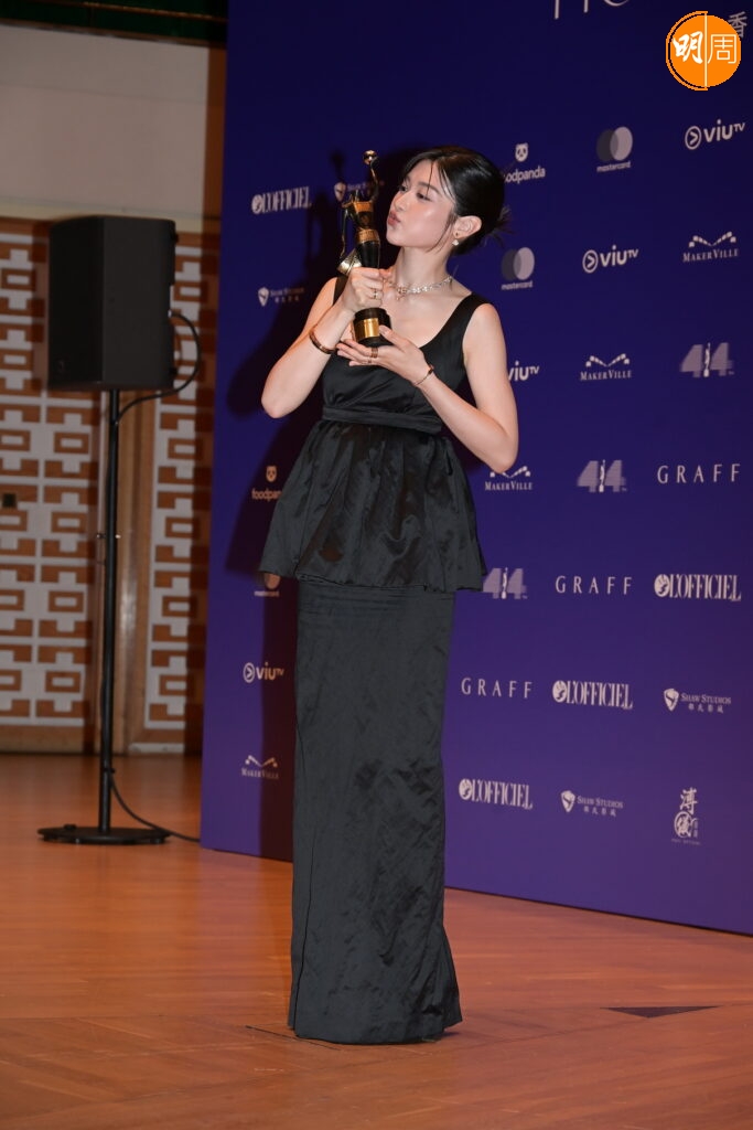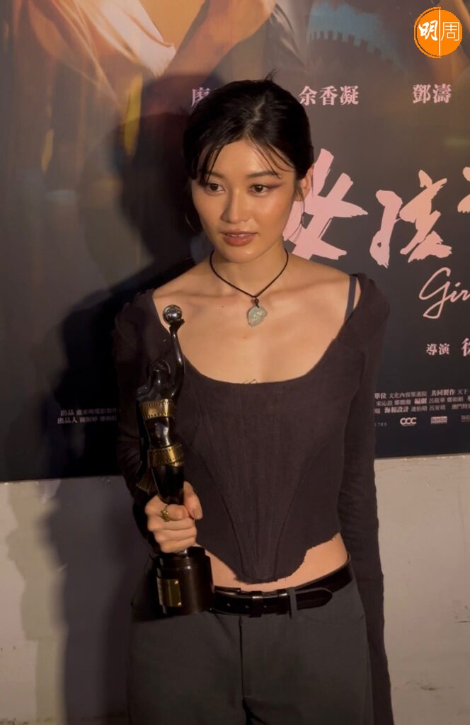 她稱宣布得獎一刻,很想一次過講完想講的話,好彩在台上基本上都講晒,「我仲未消化到這件事,好開心,第一次參與金像獎就得獎。」提到失落「最佳女配角」獎,她說:「完全冇失望,本身都不覺得自己可以得到,好恭喜衛詩雅。」作為新演員,她希望作多方面嘗試,繼續遇到好玩的劇本,現在她最想是獲獎後,電影《女孩不平凡》可以增加院線和場次。至於會否加片酬?她說:「坦白說,我幾級跳都不會好多。」