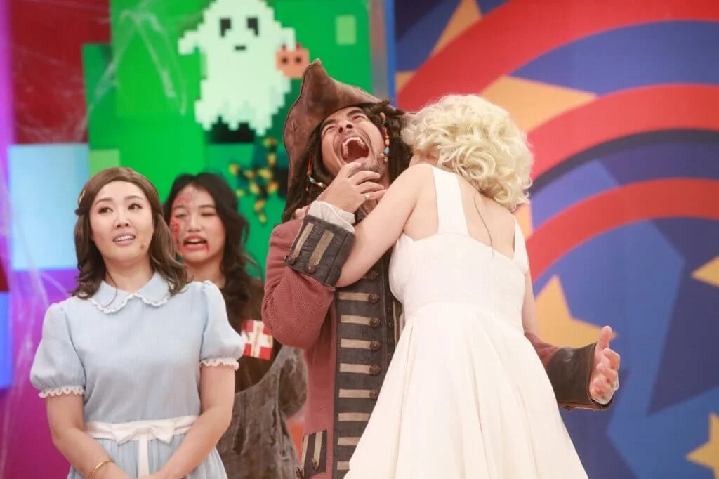 《開心無敵獎門人》今晚將播出萬聖節特別版《嘩鬼無敵獎門人》,由「獎門人」曾志偉,帶領四位「獎老」錢嘉樂、麥美恩、林秀怡及徐文浩擔任主持。今集嘉賓陣容有「嘩鬼隊」梁思浩、伍韻婷(Juliana)、羅泳嫻、關寶慧、馬蹄露及古天祥,及「鄰住買隊」黃美棋、鄭衍峰、阮嘉敏、黃頌明、焦浩軒及吳嘉儀。為了配合「萬聖節」主題,一眾主持及嘉賓扮鬼扮馬亮相,當中以化身電影《101斑點狗》中大反派Cruella de Vil的黃美棋最吸睛;穿連身白裙、戴金色假髮扮「瑪麗蓮夢露」的馬蹄露則最「驚」艷。