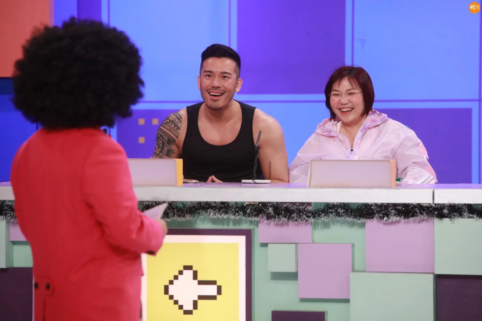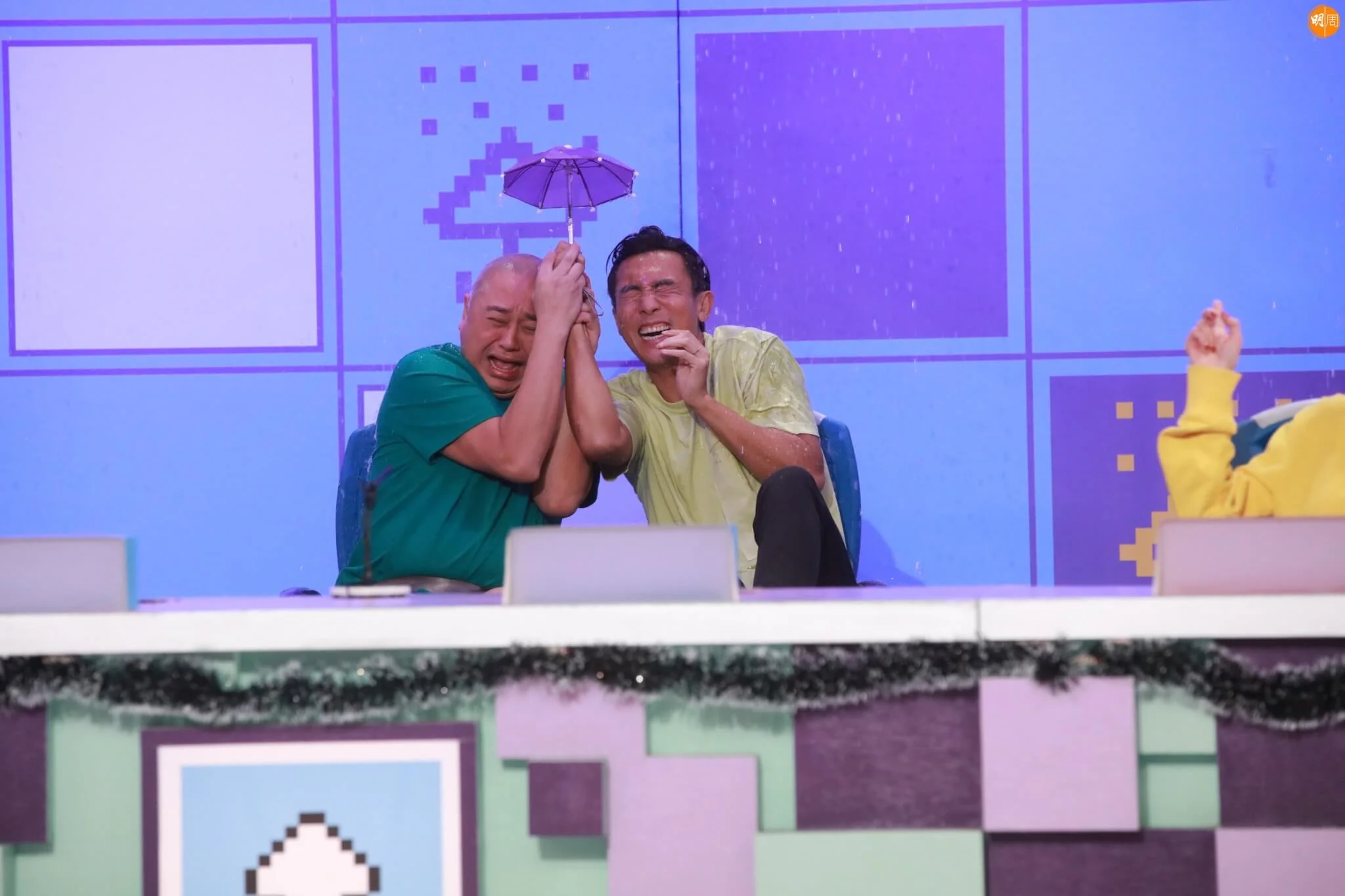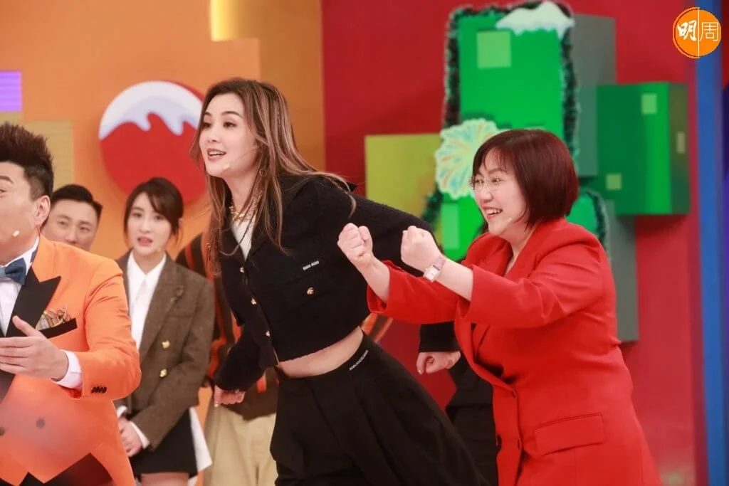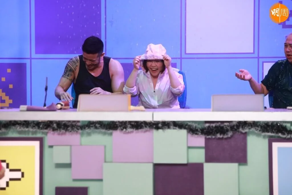 之後輪到身材姣好的玲玲師傅出場,她甫俯身即引起全場「嘩嘩聲」,而同隊的阿Sa亦絕不失色,她在「大電視」環節玩到小蠻腰都出埋嚟,相當吸睛!及後玩「彈遮遮」時,沈震軒也不讓女士們專美,換上黑色背心,晒出一雙麒麟臂,連身旁的玲玲師傅也忍不住出手狂捽,並笑到見牙唔見眼,「嘩!幾好福利呀!」