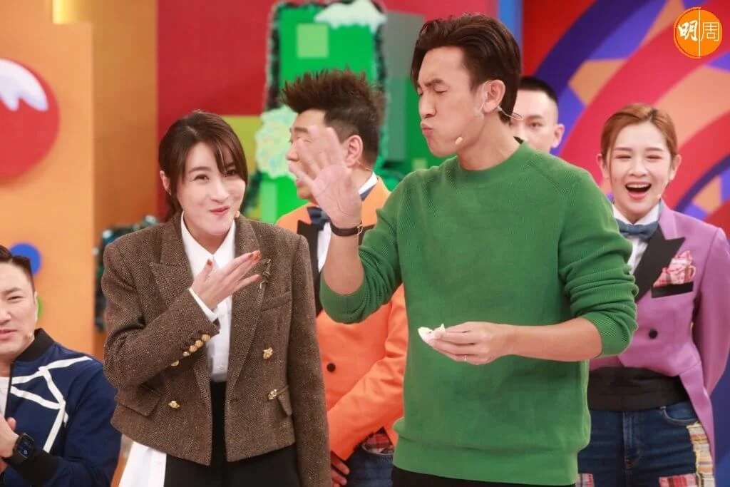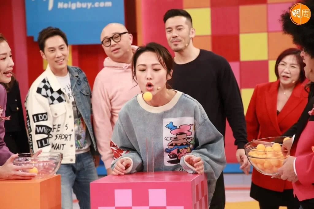 另外,湯洛雯玩「啜乒乓」時,戀情遭擺上枱,每當她上前啜波時,現場嘉賓、主持即起鬨大叫其男友「馬國明」三個字,搞到湯洛雯分晒心要嗌停。