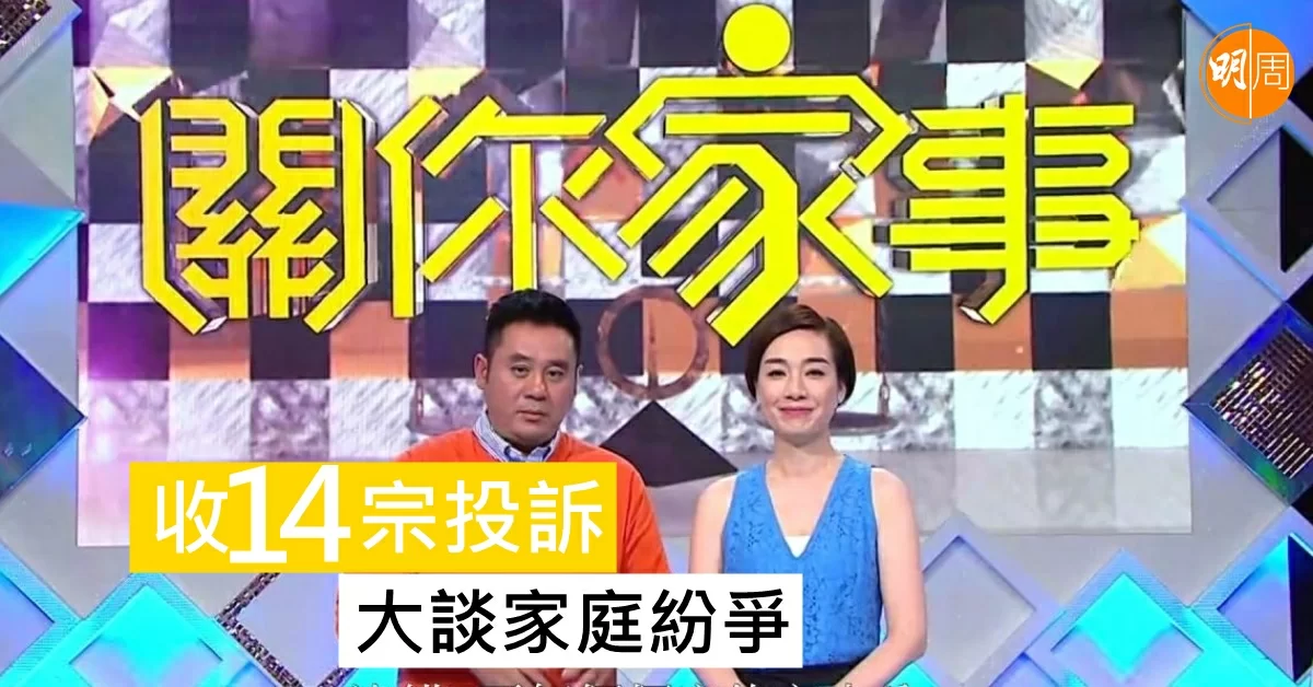 TVB訪談節目《關你家事》播出不足一周便收到14宗投訊,有網民指節目過分炒作個別家庭問題搏收視,傳達太多負面訊息。《關你家事》節目在正式播出(6月5日)前已吸引觀眾眼球,先有黃宇詩男友前妻Cady成為節目主角,後有肥媽爆喊憶起家暴往事。