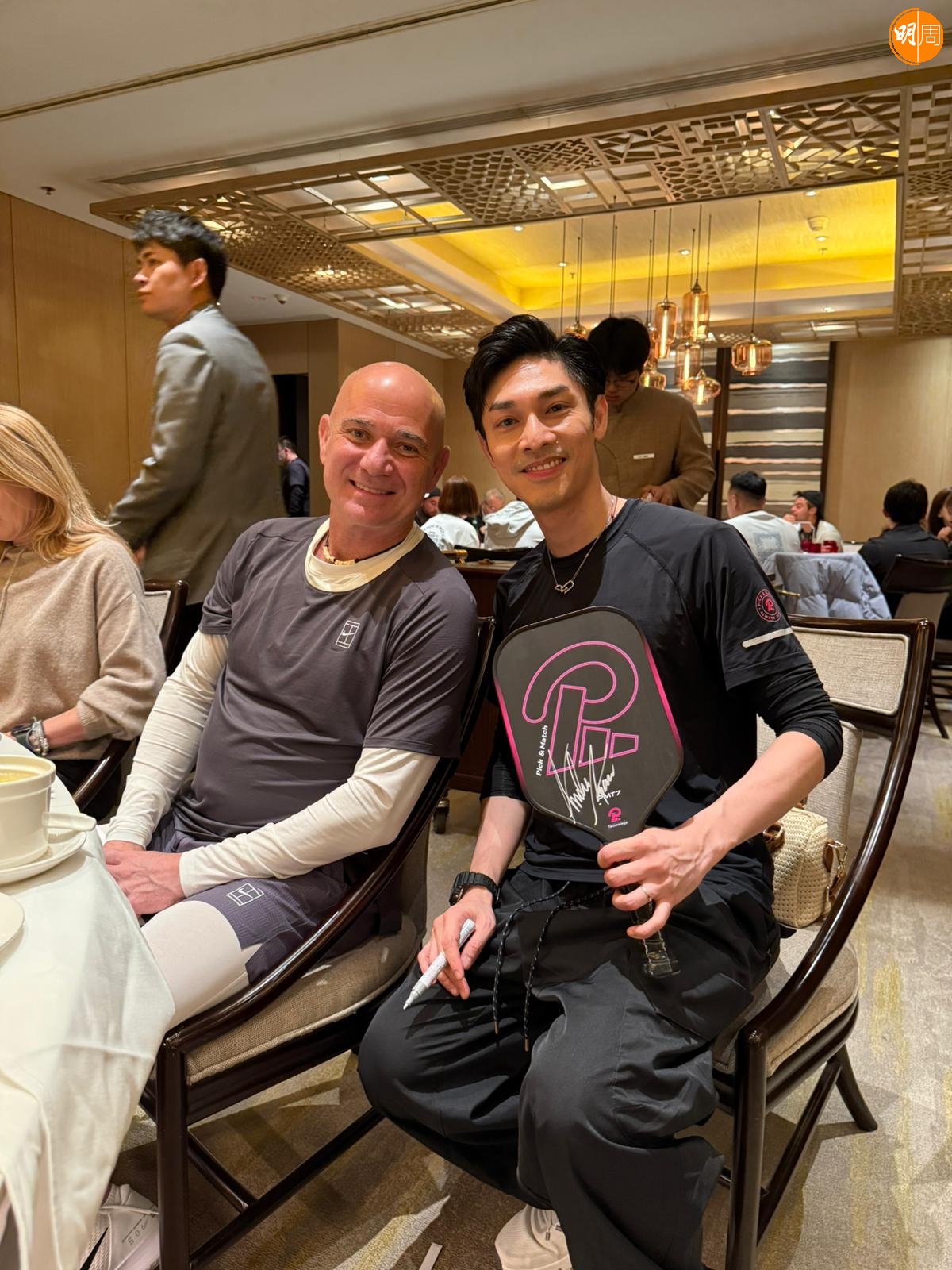 關楚耀是匹克球(Pickleball)狂熱分子,早前到北京參加比賽,順道跟當地球手交流,竟有幸與男子網球傳奇球星阿加斯(Andre Agassi)同台食飯,還跟匹克球世界一哥Ben Johns去行古廟,此行能跟兩大偶像見面,Kelvin自言如小粉絲般感覺好夢幻。