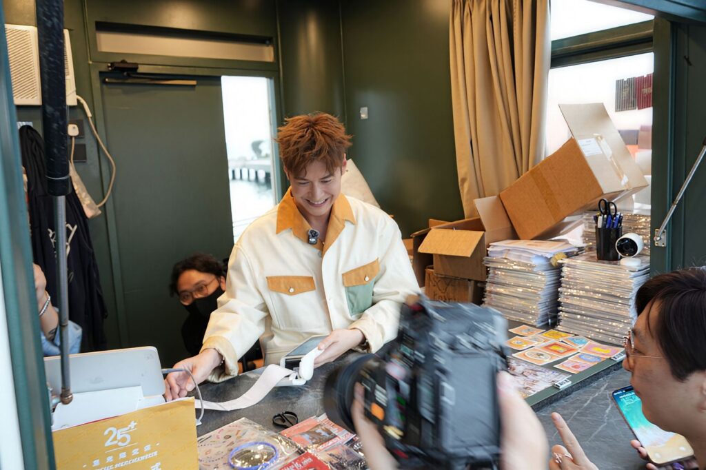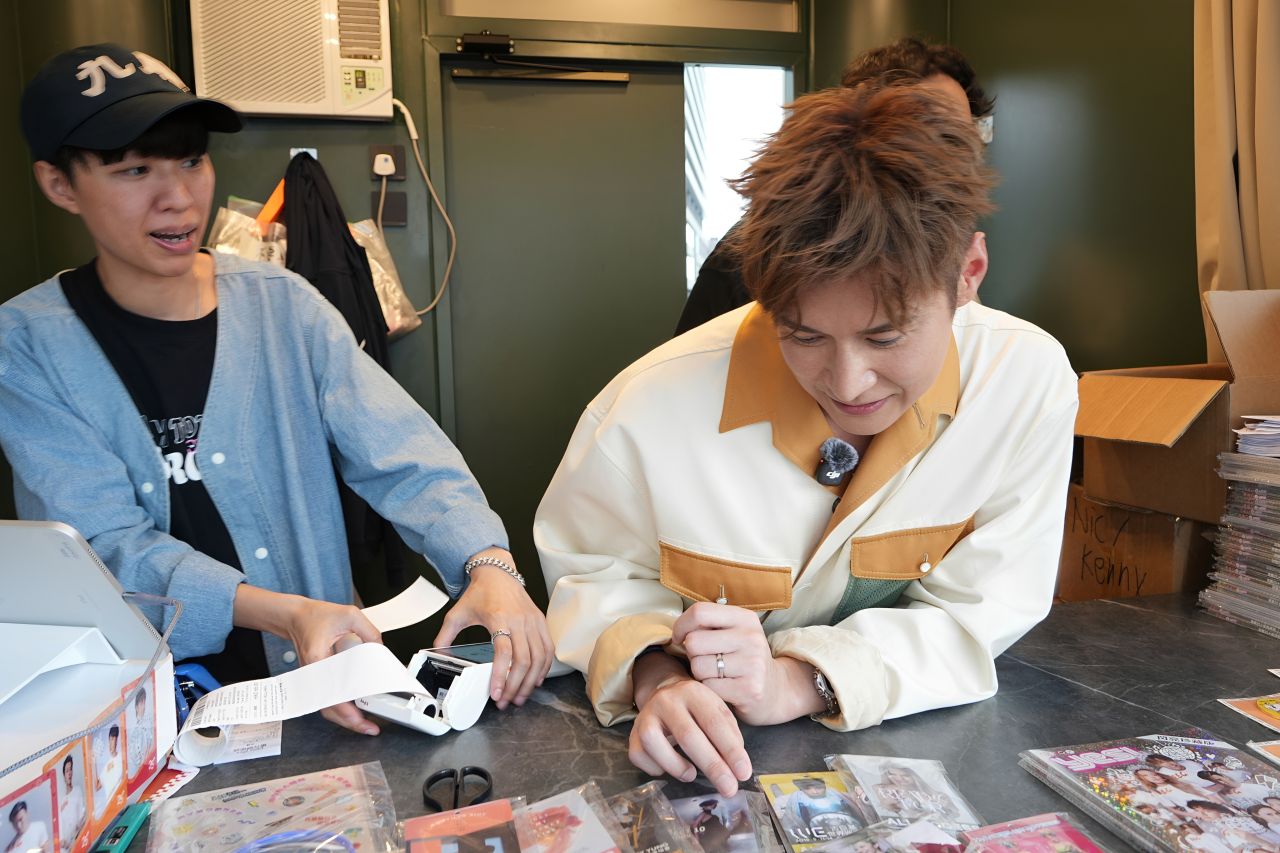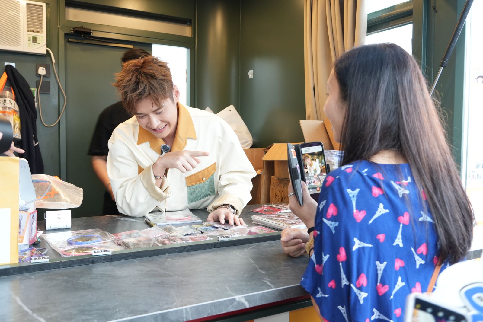 當日家樂非常稱職,落力推銷到聲嘶力竭。原本不少粉絲到限定店已經鎖定目標,不過被家樂三寸不爛之舌一出:「呢個袋得返好少咋!」、「呢本校刊唔買一定後悔!」、「呢塊歌詞鏡真係一定要買。」結果個個都乖乖加碼,買多幾樣周邊才肯離開,家樂亦十分識做,有求必應,除了於「校刊」上簽名,亦逐一跟客人合照,生意立即。