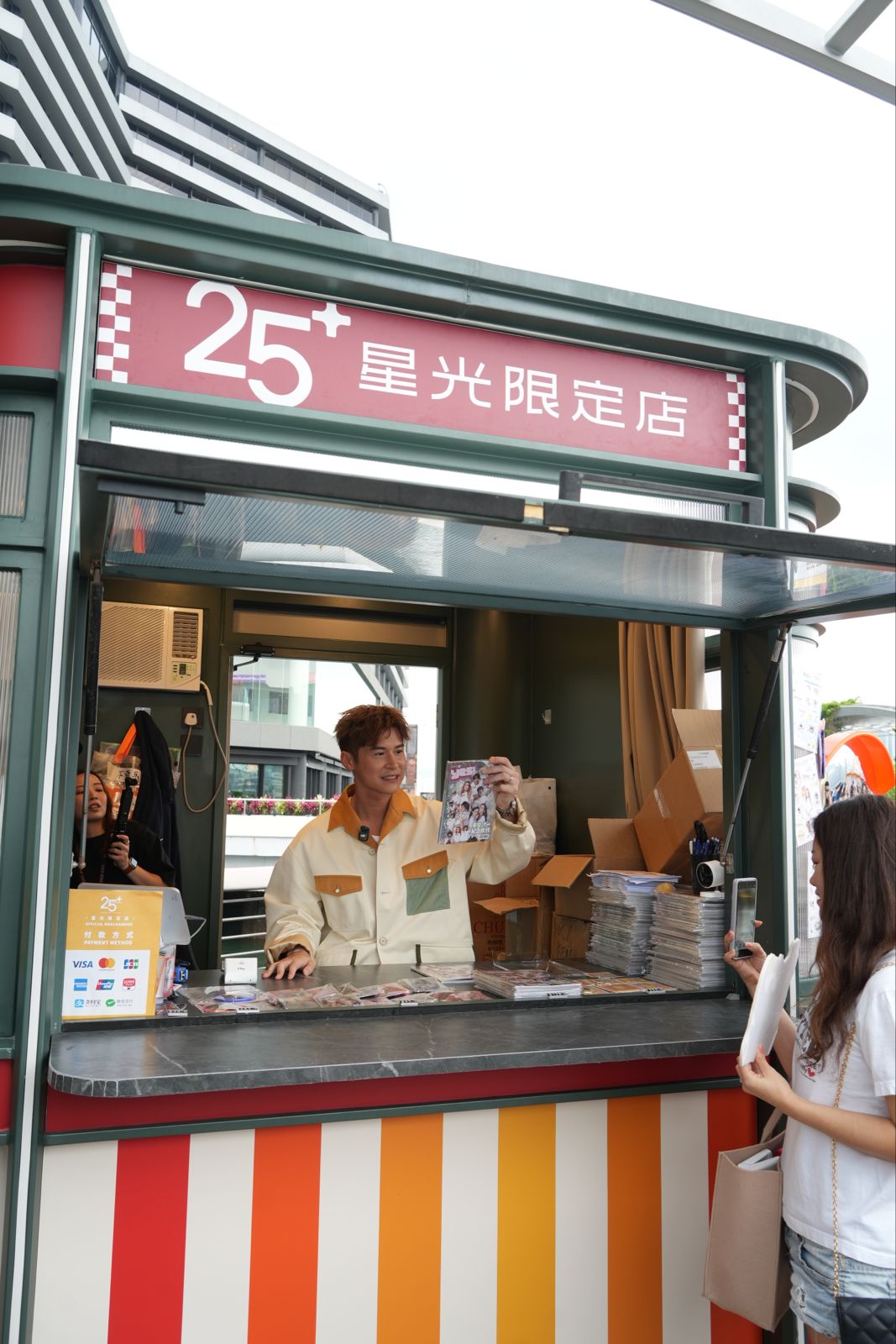 昨日(17日),英皇娛樂於尖沙咀星光大道的「EEG 25+ 限定店」突然出現一位星級店長,就是將於明天舉行的香港電影金像獎中,有份角逐最佳男主角的陳家樂。這次他客串做一日店長,現場逼到水洩不通,fans及遊客爭相舉機拍照,場面墟陷。