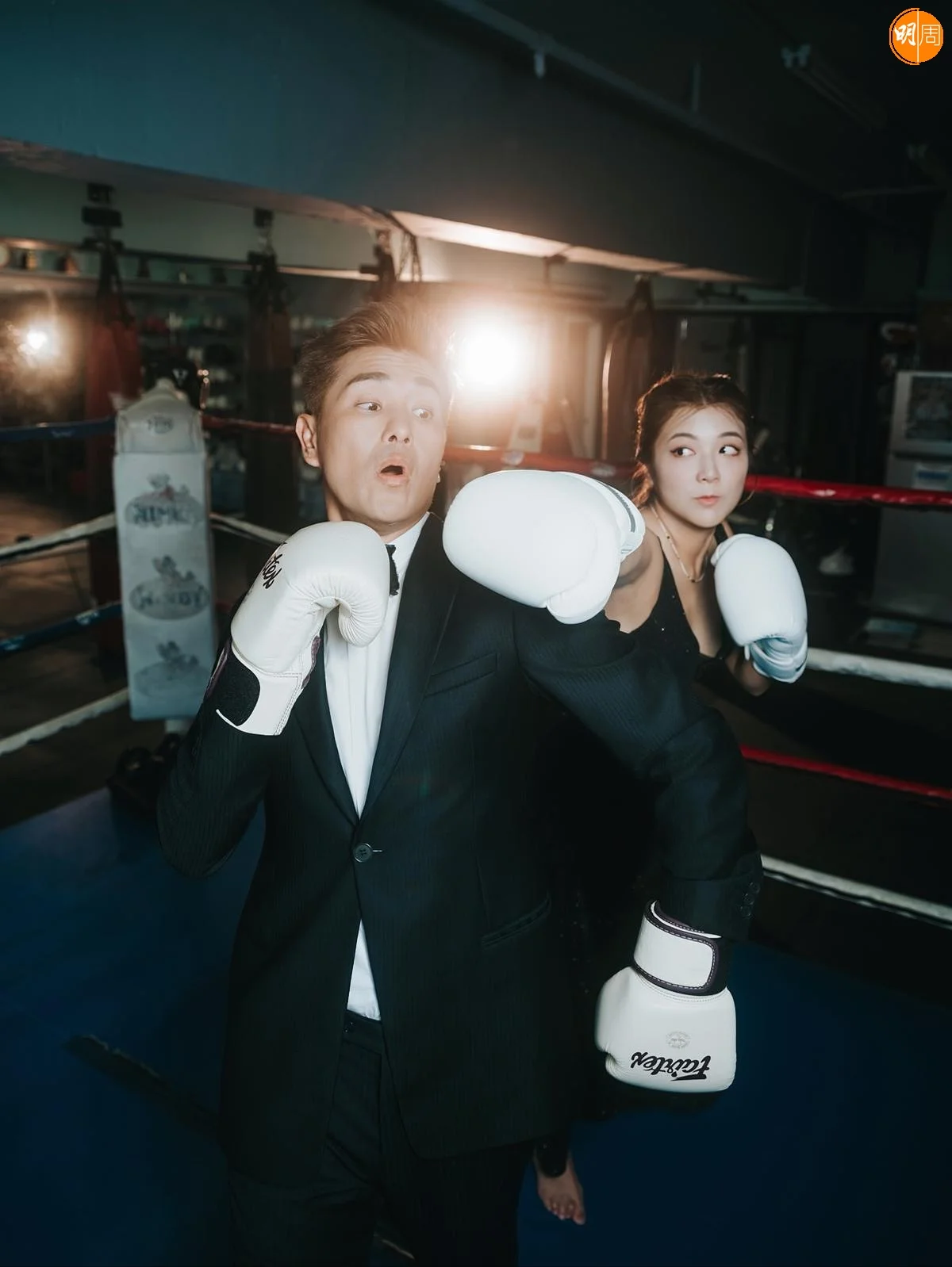 展鵬今日在社交網發放夫妻穿上晚裝與禮服,戴上拳套的打拳造型照,留言:「無論幾忙,都要記低每年今日嘅日子作為紀念!無論發生咩事,正所謂夫妻牀頭打交牀尾和,時間過得話唔快話慢唔慢,呢段日子得來不易要好好珍惜,係七年之癢定七年之養,取決於心境,祝所有七年之癢嘅夫妻朋友快快樂樂,白頭到老!」