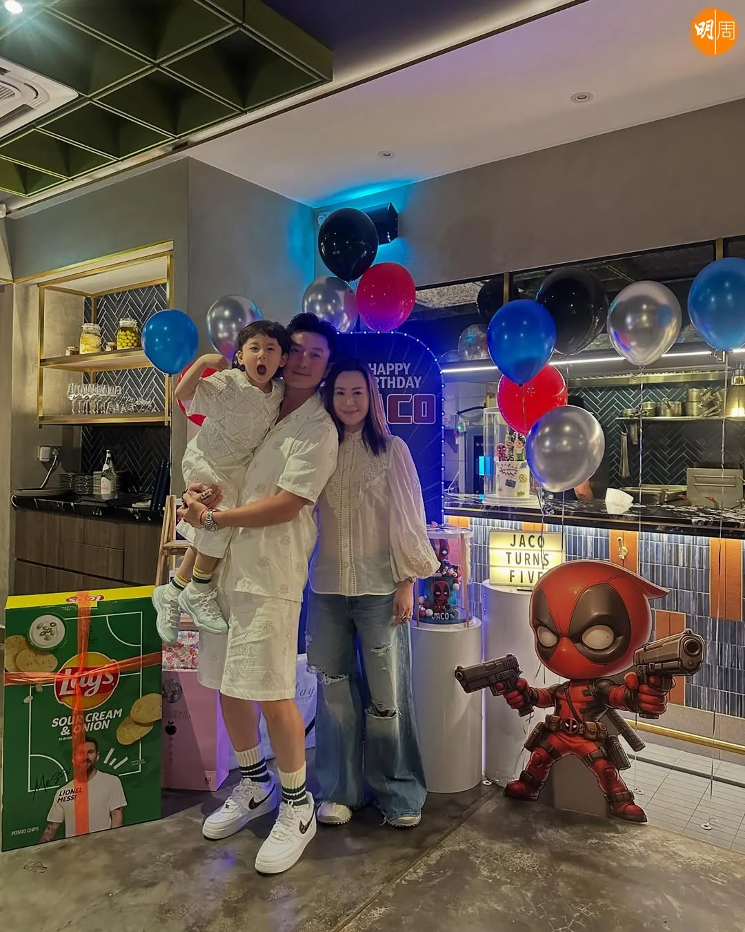 Apple留言:「我的小Jaco真係搞笑雖然你的樣子很認真,謝謝你的努力繼續加油,繼續快樂的成長」!5歲的Jaco好有表演天分,片段中他跟爸爸一樣穿深色西裝背心、長褲及黑白皮鞋,台型十足,兼且超級淡定。Jaco動靜皆宜,早前山聰提起阿仔跟他兒時一樣喜歡舞獅,就忍不住曬淚;另外Jaco K2畢業時,獲學校頒「勤學獎」,山聰與Apple都好感動,仲喊話阿仔「光宗耀祖」。