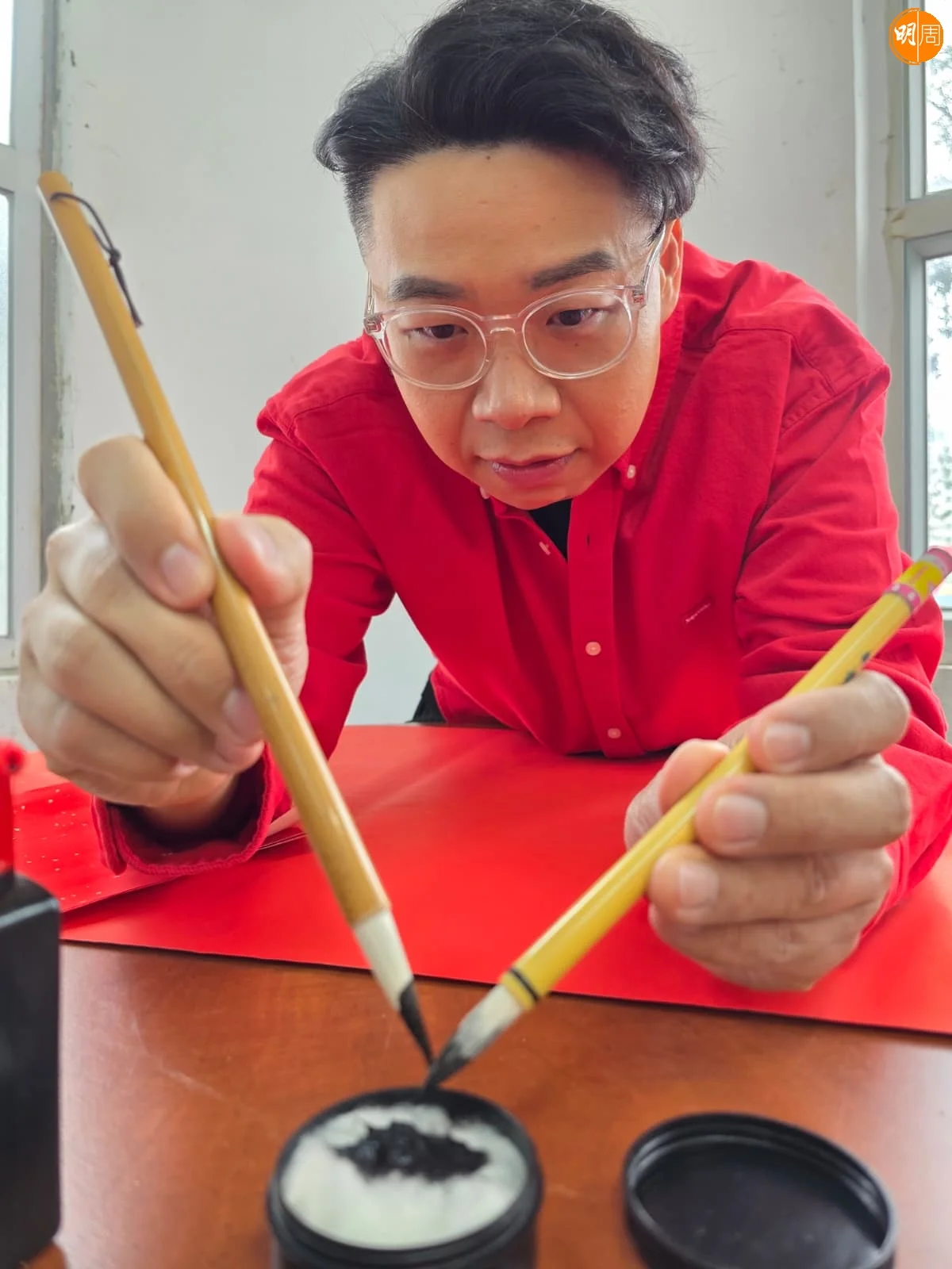 踏入馬年,阿東為本刊讀者寫了「福」和「馬上有」的揮春,希望大家「馬年馬上好運」和「馬上有飯開」!問他離開無綫近一年的近況?他說︰「離開熒光幕差唔多一年時間,雖然可能透過電視少咗同觀眾見面,但我仲有做表演藝術,依家主力就係教育方面,其實依家市道大家都明,可能演出幕前工作機會相對較少,所以我都想俾新一批觀眾認識我,一方面實踐自己教育理想,就係去教學生表演藝術,等佢哋享受當中過程同樂趣,變得更有自信;另一方面,其實我都想俾新一代觀眾,認識到『何遠東』呢一個演員,知道佢除咗演戲之外,佢都可以教書嘅!」