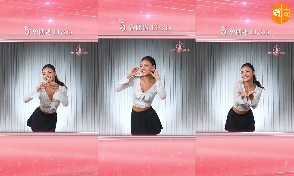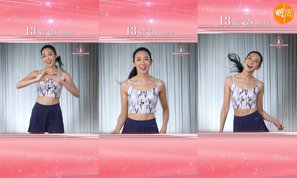 昨晚播出最新宣傳片,佳麗狀態大勇,熱門之一的7號施宇琪及12號庄靜璟穿上華麗晚裝後,驕人身段表露無遺。大會官方社交網昨日上載14位佳麗的「即興跳舞挑戰」短片,9號陳詠詩大晒超強擘腿功之餘,老鼠仔的壯健程度亦相當驚人,不愧為前體操界精英運動員。11號梁倩萱及13號袁文靜分別憑貓咪手及「舞動的馬尾」成功搶鏡,充滿青春活力。