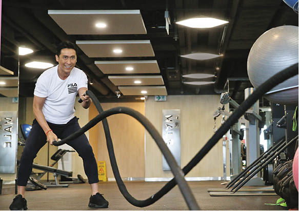 除了改變飲食習慣之外,運動的改變同樣重要,他表示現在主要以保健為主,「其實現在自己沒有一個特定的運動日程,通常有時間都會一星期做五日運動,主要游水及輕舉,盡量都不會做太劇烈的運動。其實自己由年輕到現在都不會刻意去操肌肉,只不過以前做警察G4時,要體能上的操練,況且當時自己又是香港排球隊隊員,又有跳躍、殺波等動作,令自己有運動創傷,肩膊、腰、膝蓋都受傷,有時天氣改變都會痛;所以現在做的運動只是強化肌肉,支持整個人的體重及支撐骨骼,現在我會選擇急步行及游水,我不會選擇令自己創傷加深的運動,因為當你受傷後又不敢做運動,反而更浪費時間。你問我一個男人的魅力?給人感覺健康就OK。」
