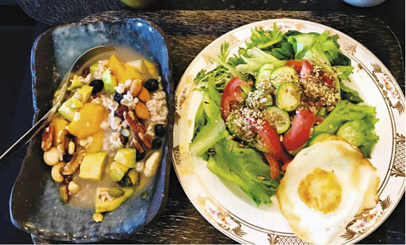 飲食方面盡量以原材料為主,「首先蔬菜很重要,主張吃一些原本形狀的食物,沒有任何添加就最穩陣,可以選取種子類,如亞麻籽、大麻籽、奇亞籽、豆類及堅果,還有不同顏色的水果,已經可以提供人體所需的不同營養,最好每日吃五六種不同顏色的蔬果。」