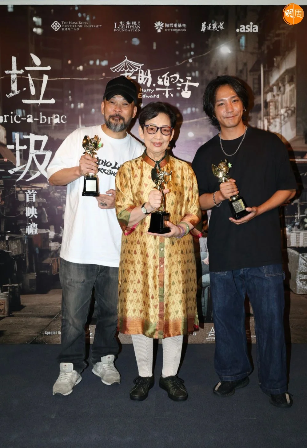 馮素波、葛民輝、林耀聲今日(15日)到香港藝術中心出席虐老短片《垃圾》首映,電影早前在多個影展獲獎,波姐表示沒有特別去慶祝,只知道導演將再拍短片,希望她能拍大電影,笑言如果導演將來在康城影展得獎,就要帶她去一趟,最好就帶同阿葛和林耀聲會更加熱鬧。波姐今日戴上茶色眼,原來日前再次動眼手術,她透露早年雙眼分別動過白內障,最近檢查過有需要以激光再去矯正視力,前日才去覆診,希望復元後可不用戴眼鏡就可閱讀。