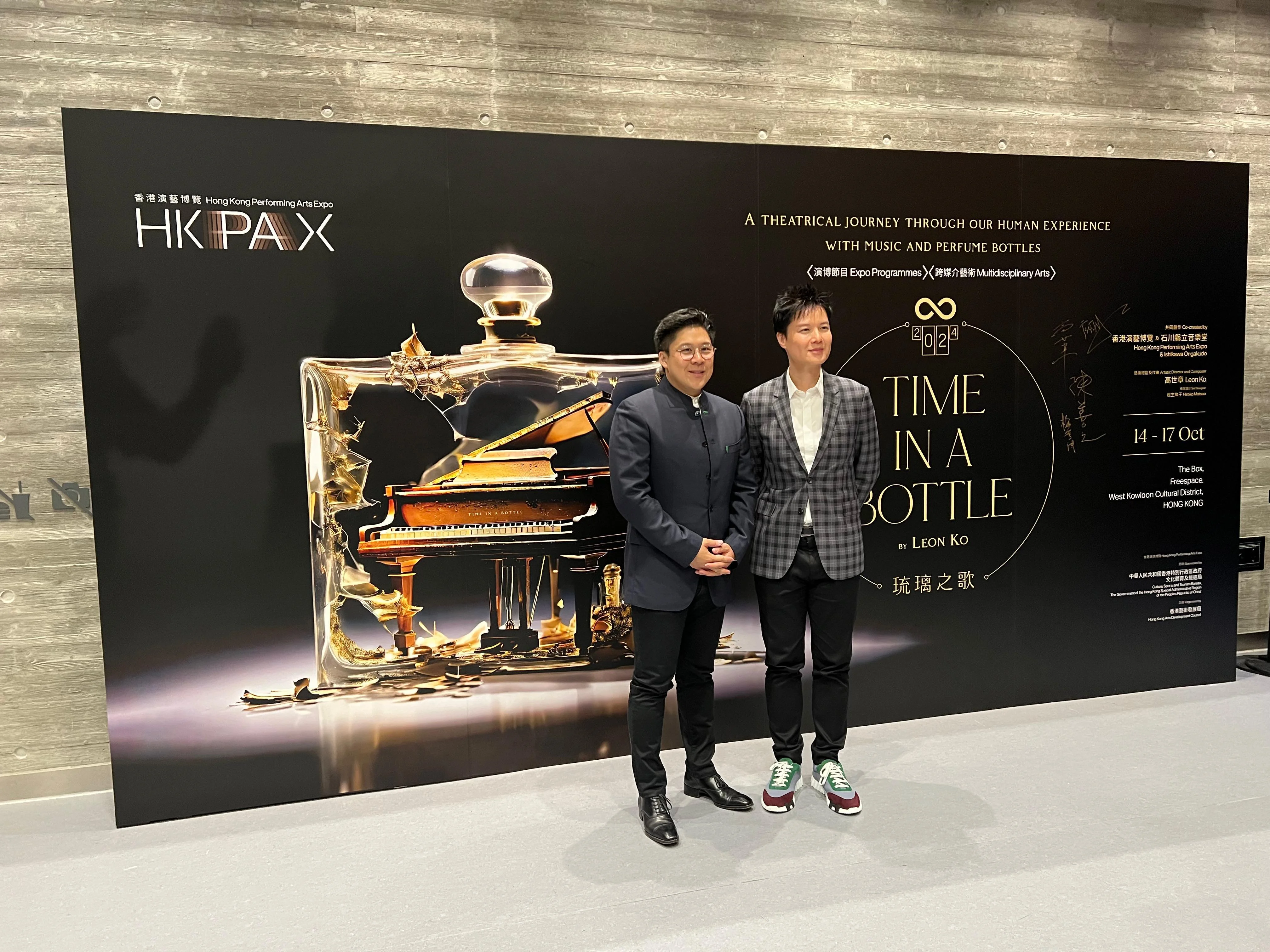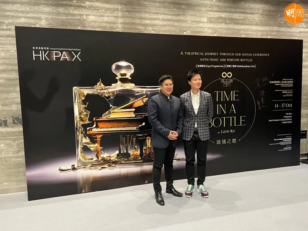 高世章為首屆「香港演藝博覽」創作的《琉璃之歌》,昨日在西九文化區自由空間大盒上演,作為音樂劇作家及古董香水瓶收藏家,他將珍藏的250個香水瓶構思為十二個場景,創作十二段樂曲篇章,由雙簧管、鋼琴和弦樂四重奏演奏,配合視覺藝術、戲劇、音樂和香氛,帶領觀眾感受不一樣的神奇體驗。