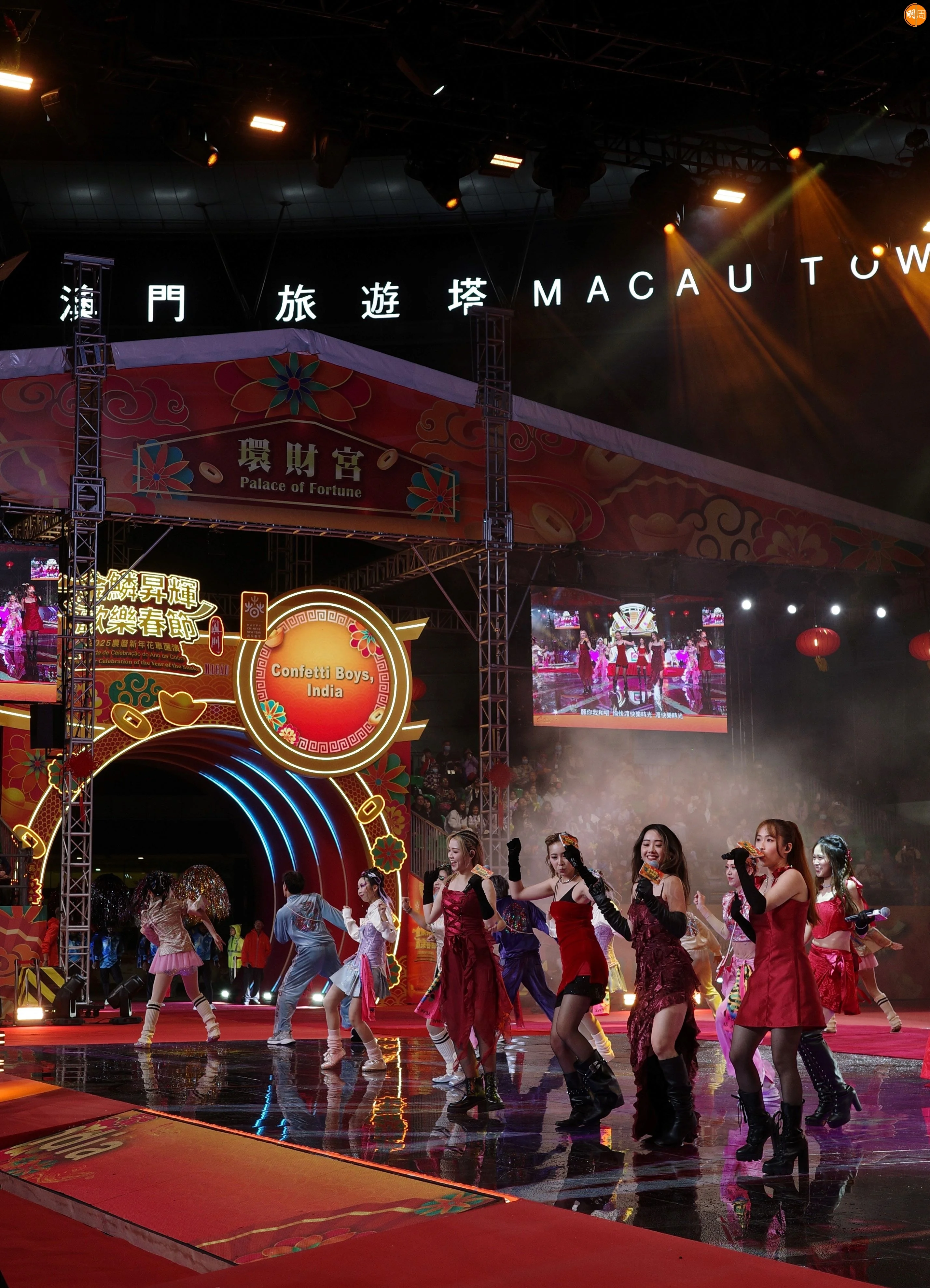 大年初三晚,魏浚笙(Jeffrey)與女子組合Beanies獲澳門旅遊發展局邀請,為賀年活動「2025農曆新年花車匯演之金鱗昇輝歡樂春節」擔任壓軸表演嘉賓,大會特別炮製《喜氣洋洋》x《APT.》的medley,由Jeffrey與Beanies加上30位dancers合唱合跳,充滿能量及快樂,全場氣氛高漲!Jeffrey與Beanies演出後,返回後台欣賞煙花匯演,期間與眾舞蹈員合照留念,令到後台變成集郵熱點!