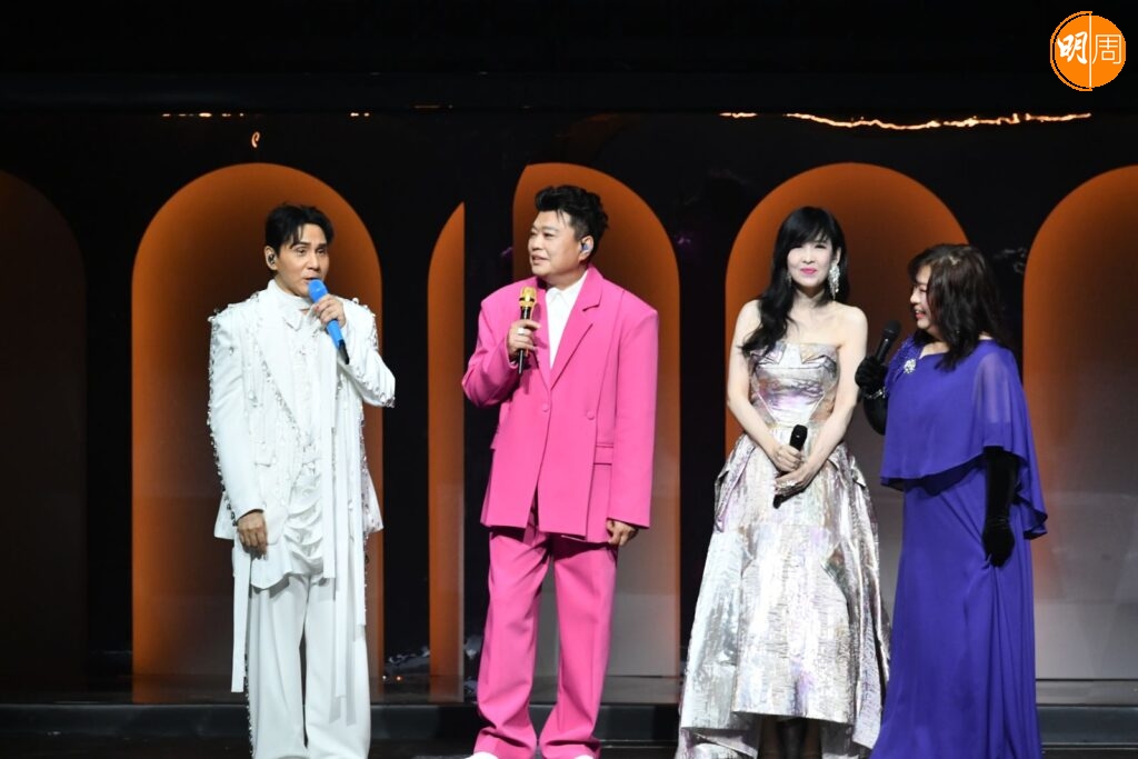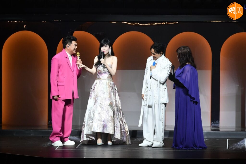 難得聚首,四人話當年的環節卻爆笑連場。周慧敏、阮兆祥和余劍明竟聯手在台上大數黃凱芹「小氣」往事。余劍明率先投訴,指當年只有一次在半夜收工獲黃凱芹接載回家,阮兆祥更誇張地自爆一次順風車也沒坐過。黃凱芹聞言即時反擊:「嗰時喺電台收工,我住喺青衣,但余劍明住觀塘都話順路要我車喎!」一來一往的搞笑辯駁,引發全場爆笑。