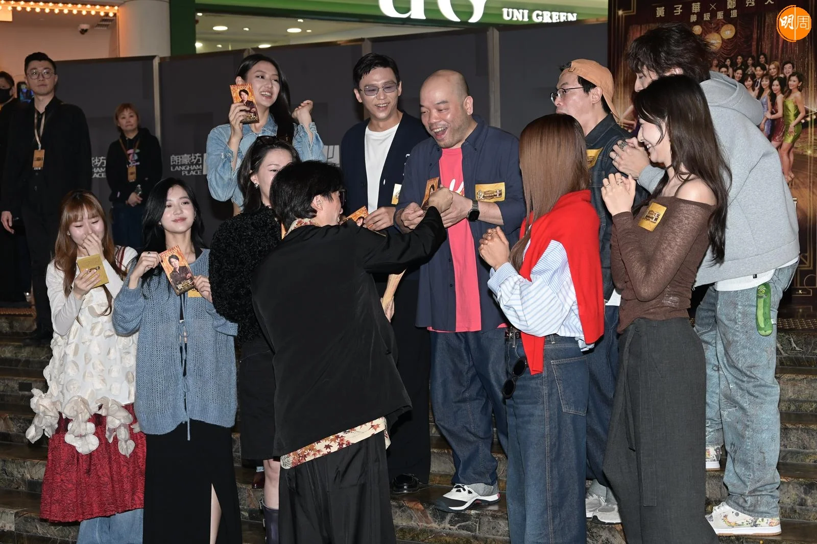對於情人節謝票場,戲中一班演員齊齊歡哥(子華戲中角色)上身,恤衫西裝打扮亮相,子華讚賞他們認真、專業,所以他今日也以歡哥裝扮到場,笑指這身打扮可橫行18區。被問到哪一個扮歡哥最神似?他認為各有各風格,繼扮歡哥之後,一班EJ girls笑言正密謀扮V姐謝票。