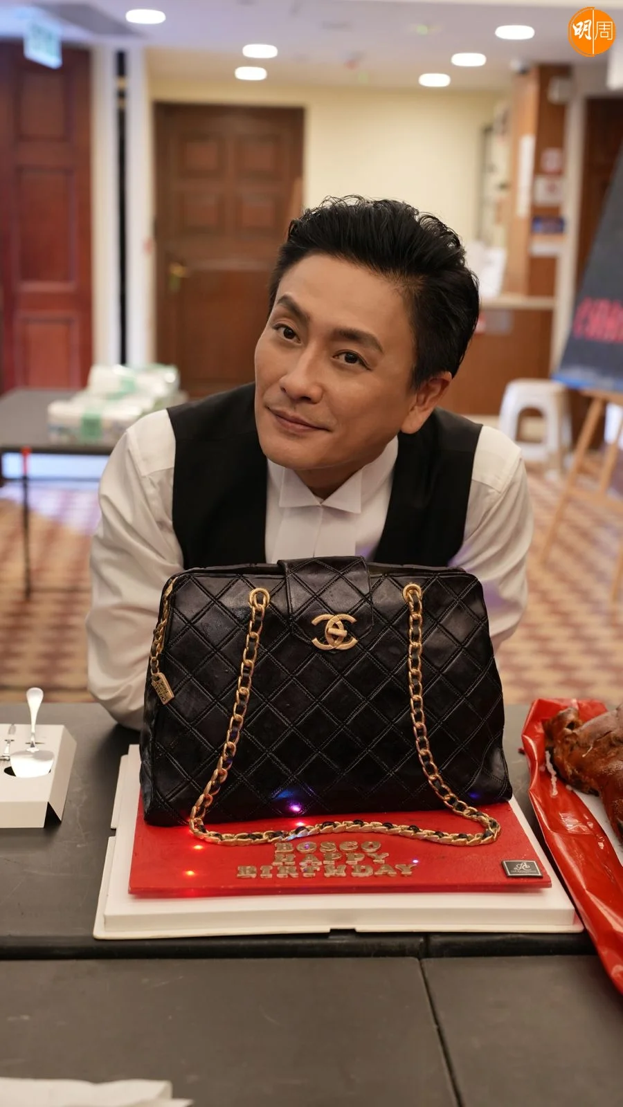 今次的蛋糕設計別出心裁,以Bosco近日在《新聞女王2》中吸睛爆紅的經典名牌包為靈感,製作成一比一復刻造型蛋糕。身穿律師袍的Bosco一見即忍不住笑說:「嘩,好大個!」更直呼完全沒想到這個「包包」會變成蛋糕,驚喜指數爆燈。最搞笑的是,蛋糕包內竟然還藏着一包牛奶,像真程度令人拍案叫絕。