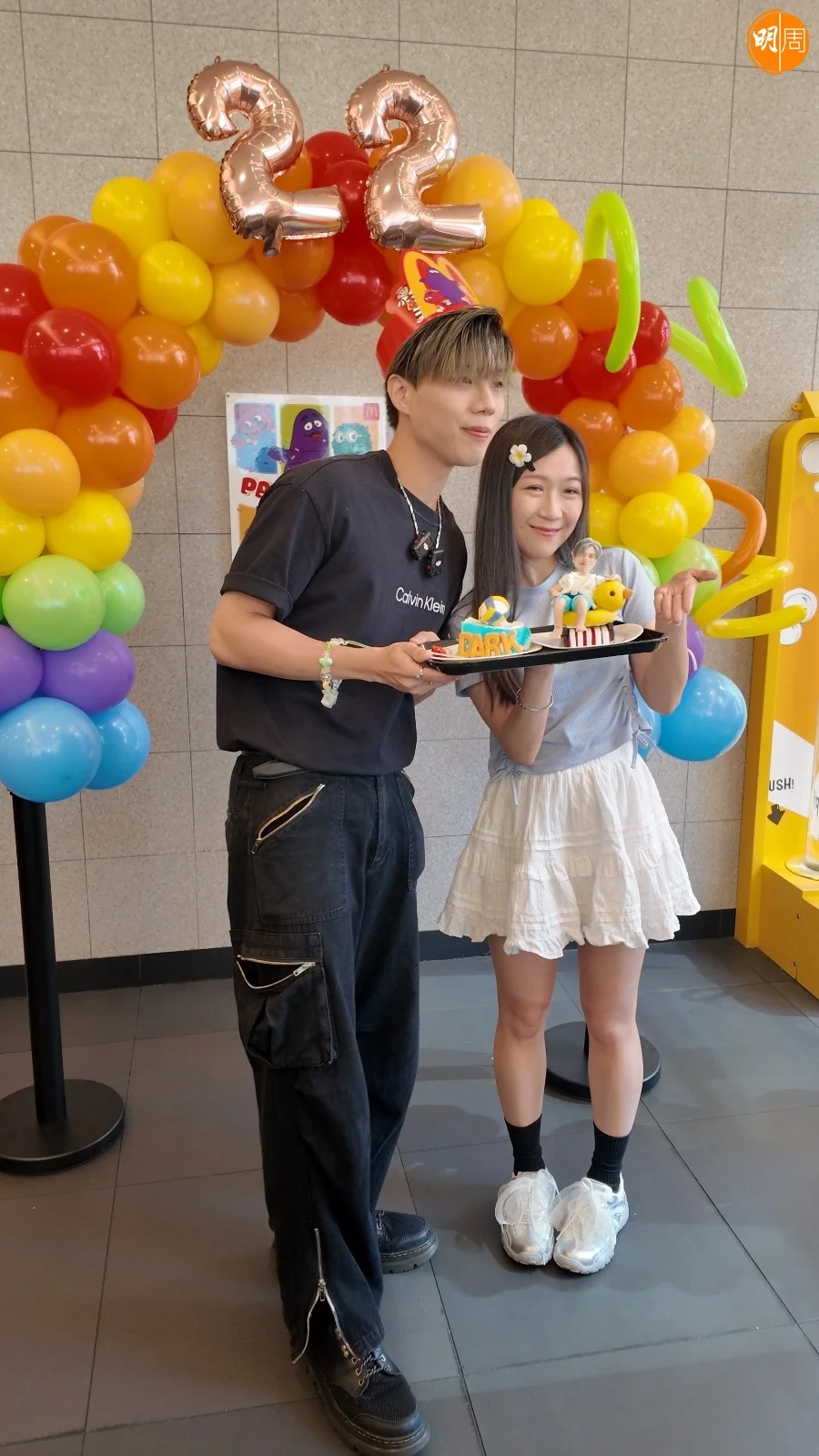 唱作歌手黃明德(Dark)日前迎來22歲生日,一班fans特別於麥當勞為他搞了一個「漢堡神偷」主題生日會,還送上一個超搞鬼的「說謊(雪芳)」蛋糕,全場笑到碌地!今次是Dark人生第一次於麥當勞開生日會,玩到high爆之餘,經過今次生日會,Dark自言對麥當勞的角色名稱一清二楚,絕對是「漢堡專家」。