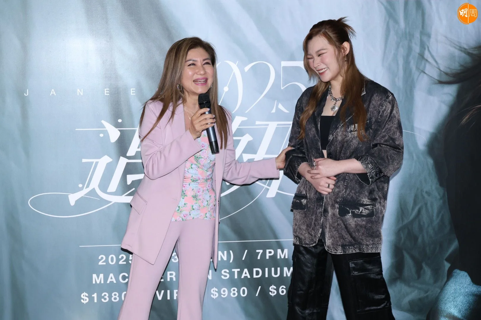 黃洛妍(Janees)今日(18日)出席其首次個人演唱會《2025.7 遇妍》的發布會,無綫高層樂易玲亦有現身,粉絲送上蛋糕為偶像預祝生日。將於下月在麥花臣場館開騷,Janees心情興奮,她直言沒有諗過一生人之中,能夠擁有個人單曲《我們都是藝術品》及演唱會。Janees透露當知道能夠開個唱時,未有開心到喊,但最近有失眠情況,未知是因為心情太過興奮,抑或天氣愈來愈熱所致。