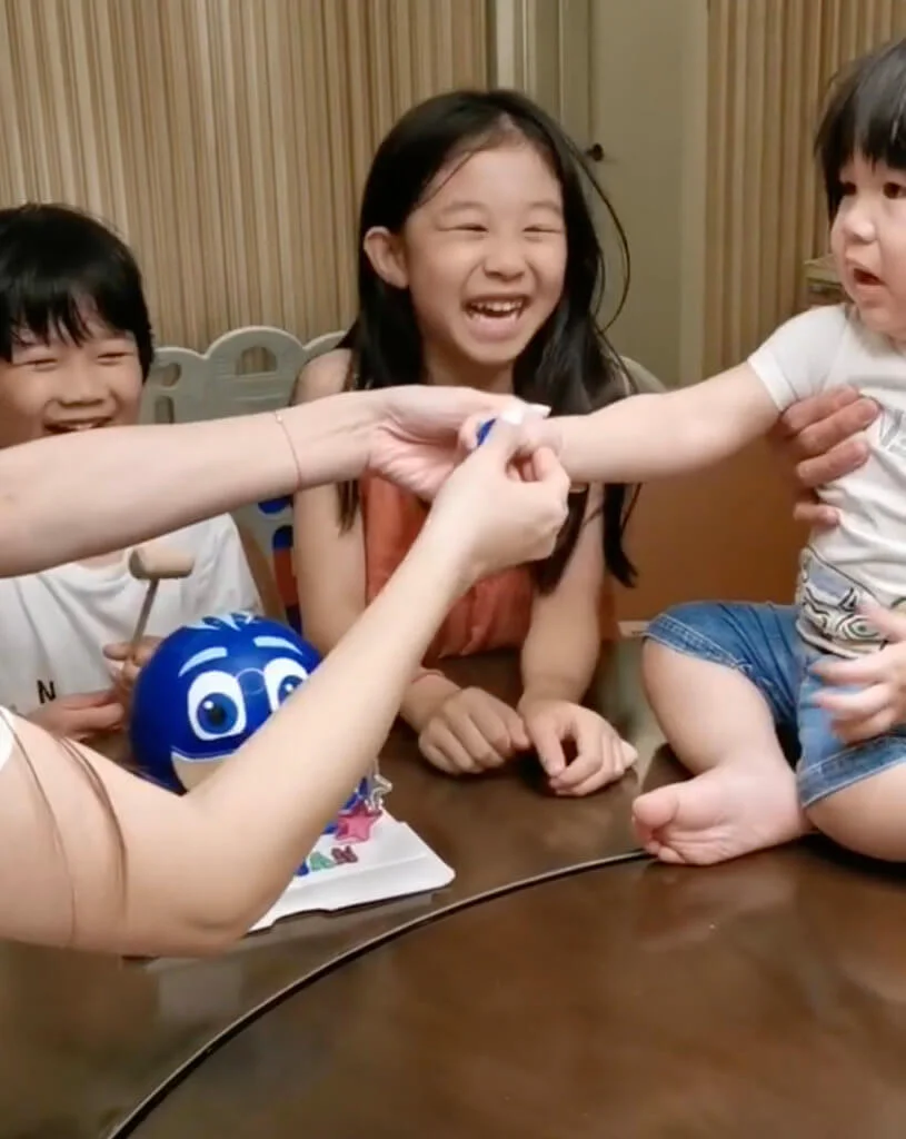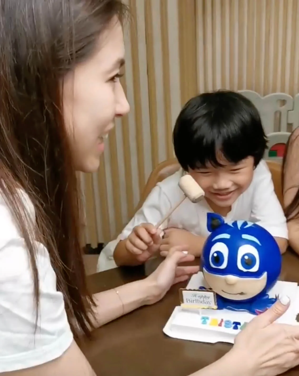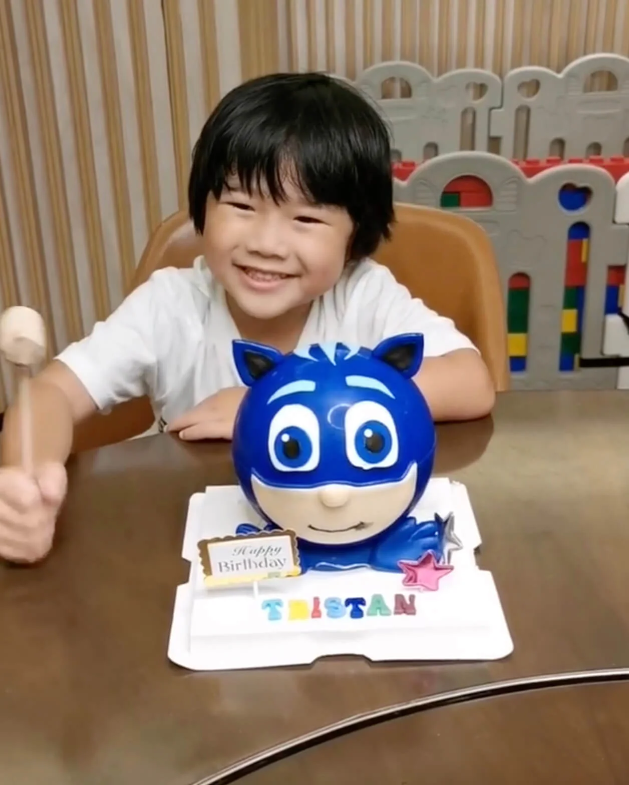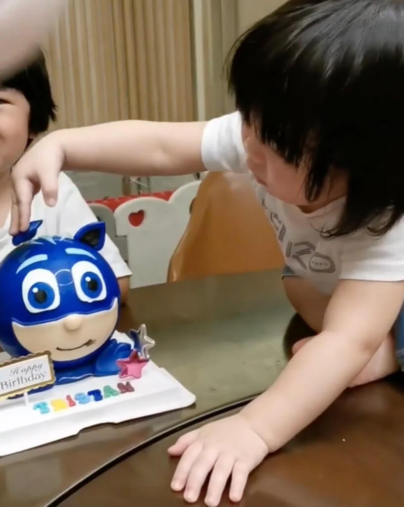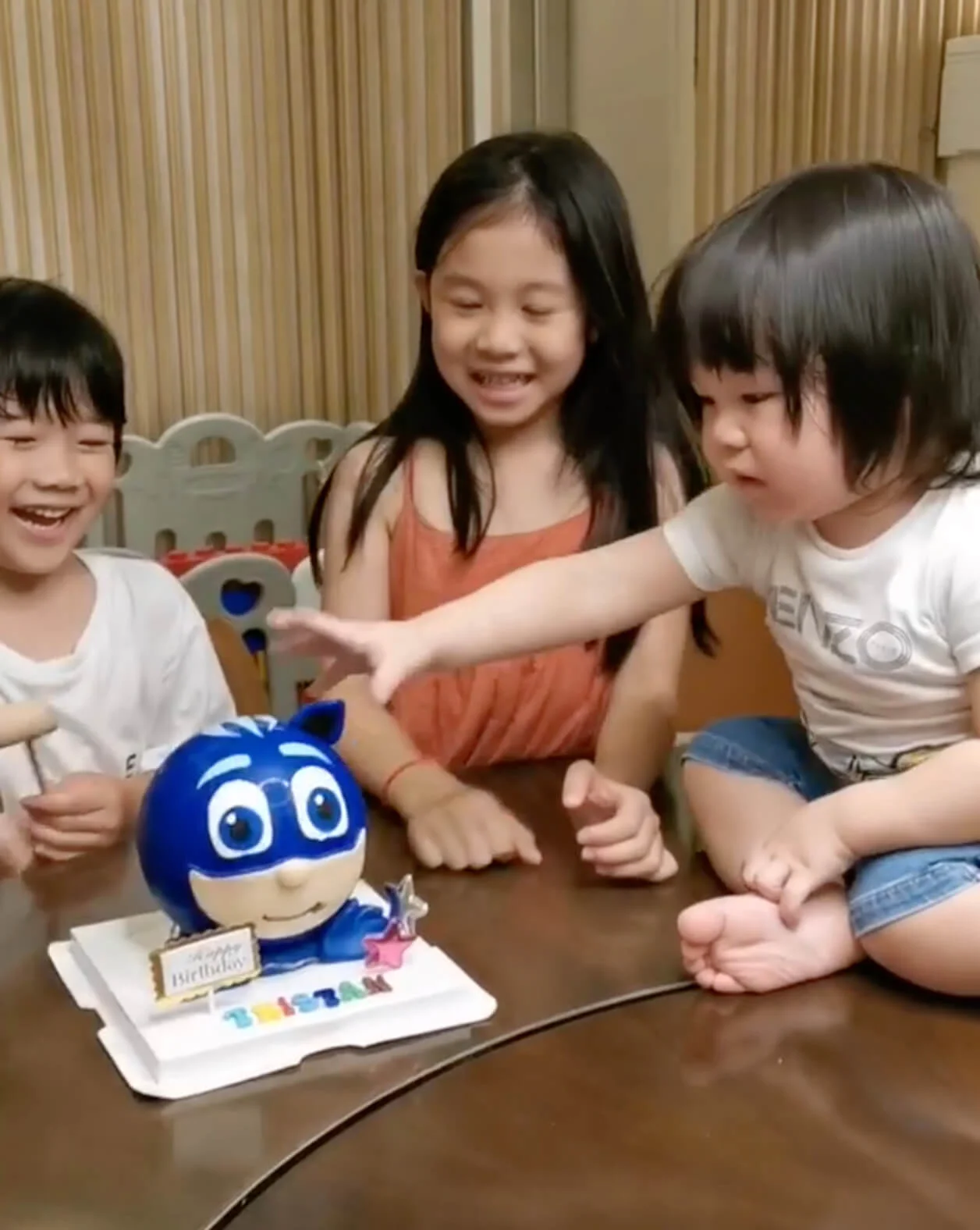 黃祥興與老婆Peggy於2013年結婚,育有兩子一女,型爸不時在IG分享家庭生活點滴。上周祥興為大女Paige慶祝完7歲生日後,今周便是二仔Tristan的5歲生日,他在家為囝囝辦了一個小型生日會,又送上卡通扑扑蛋糕,並寫道:「只係隔開一個禮拜,輪到細佬唔係應該係哥哥嘅生日。祝你快高長大,教小朋友唔係一件容易嘅事,希望你聽教聽話, 爸爸錫曬你!愛你(T’aime T’aime)Tristan。」祥興又分享囝囝的片段,片中見Tristan拿着小搥扑,身旁的細佬Damien卻突然伸手拔掉公仔的耳朵,雖然媽媽前來阻止,但大力的Damien就拔下公仔的另一個耳朵,哄得全家大笑,場面十分歡樂。