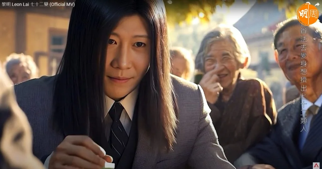 今次《七⼗⼆變》MV以AI製作,效果不錯,更獲得樂迷喜愛,有人讚黎明非常緊貼科技及非常幽默:「真是唯一走在時代的尖端的藝人!」MV中,黎明為配合主題七十二變,化身不同電影經典角色,包括孫悟空、《甜蜜蜜》騎單車的黎小軍《劫後重生》流落荒島的湯漢斯、《功夫》包租婆、《破壞之王》斷水流大師兄、《賭神3之少年賭神》的高傲、《阿拉丁》燈神等。